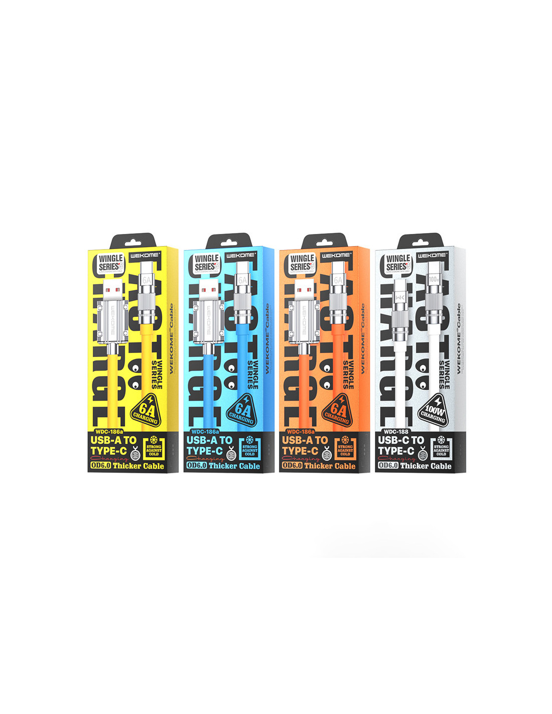 Kabel WEKOME WDC-186 Wingle Series do ładowania i transmisji danych o długości 100 cm, wyposażony w złącze USB-A na USB-C.