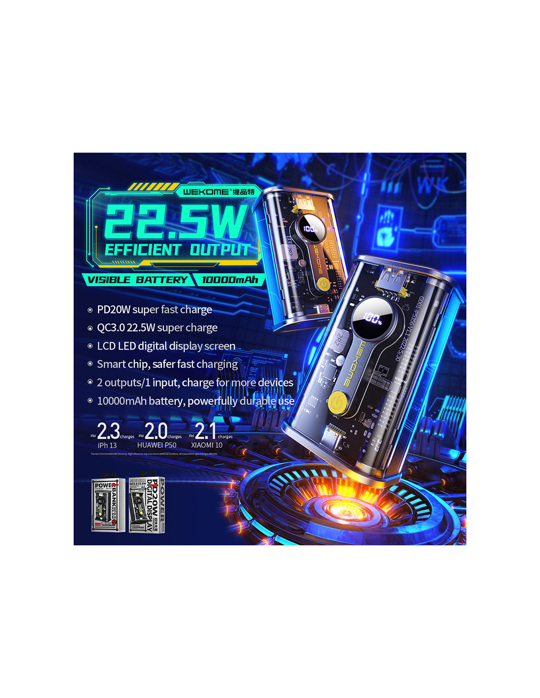 Powerbank 10000 mAh Super Charging PD 20 W + QC 22.5W Wekome Wp-333 Vanguard Series Czarny