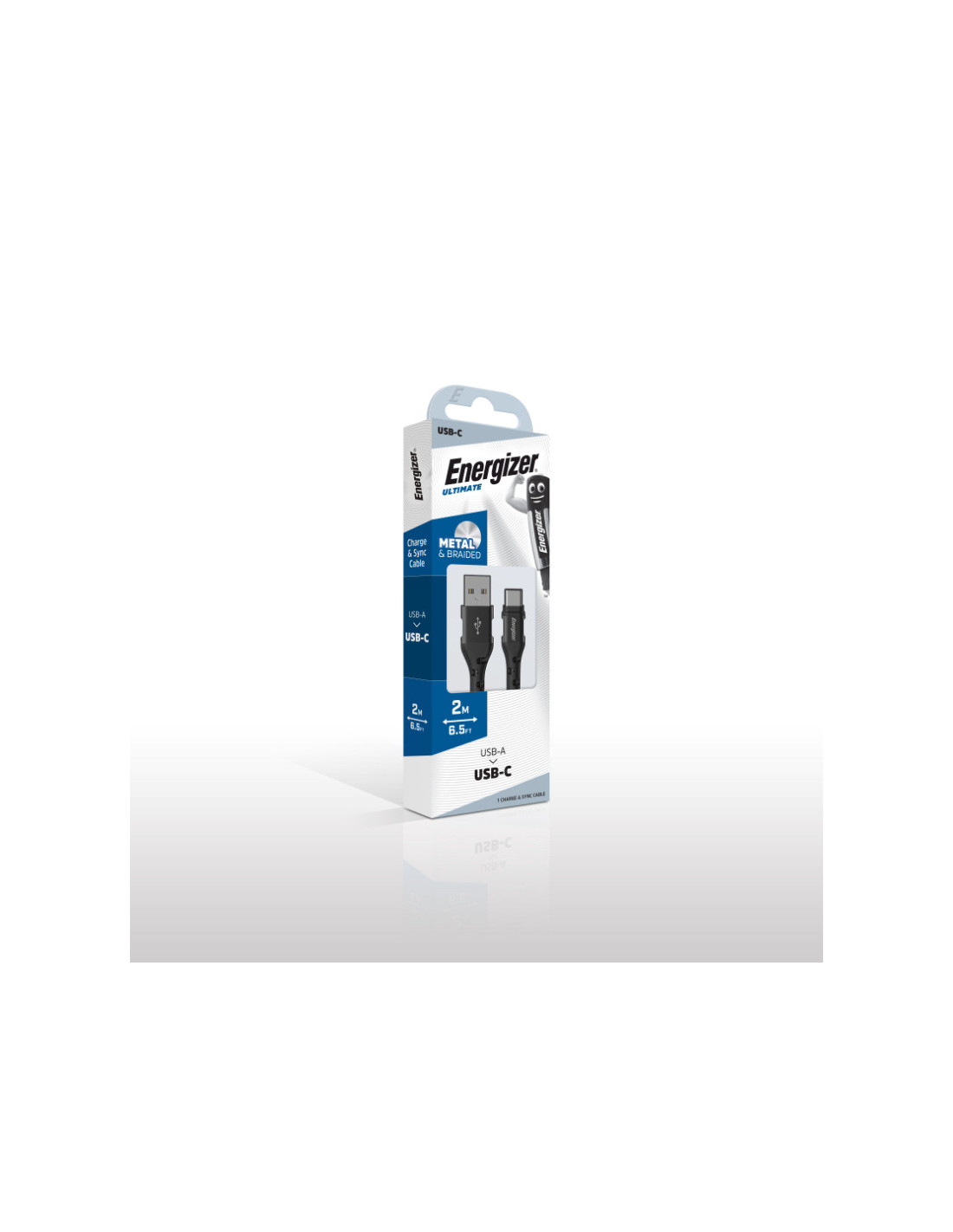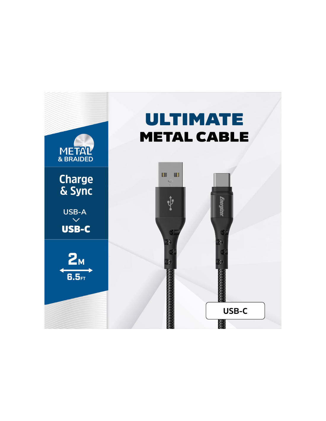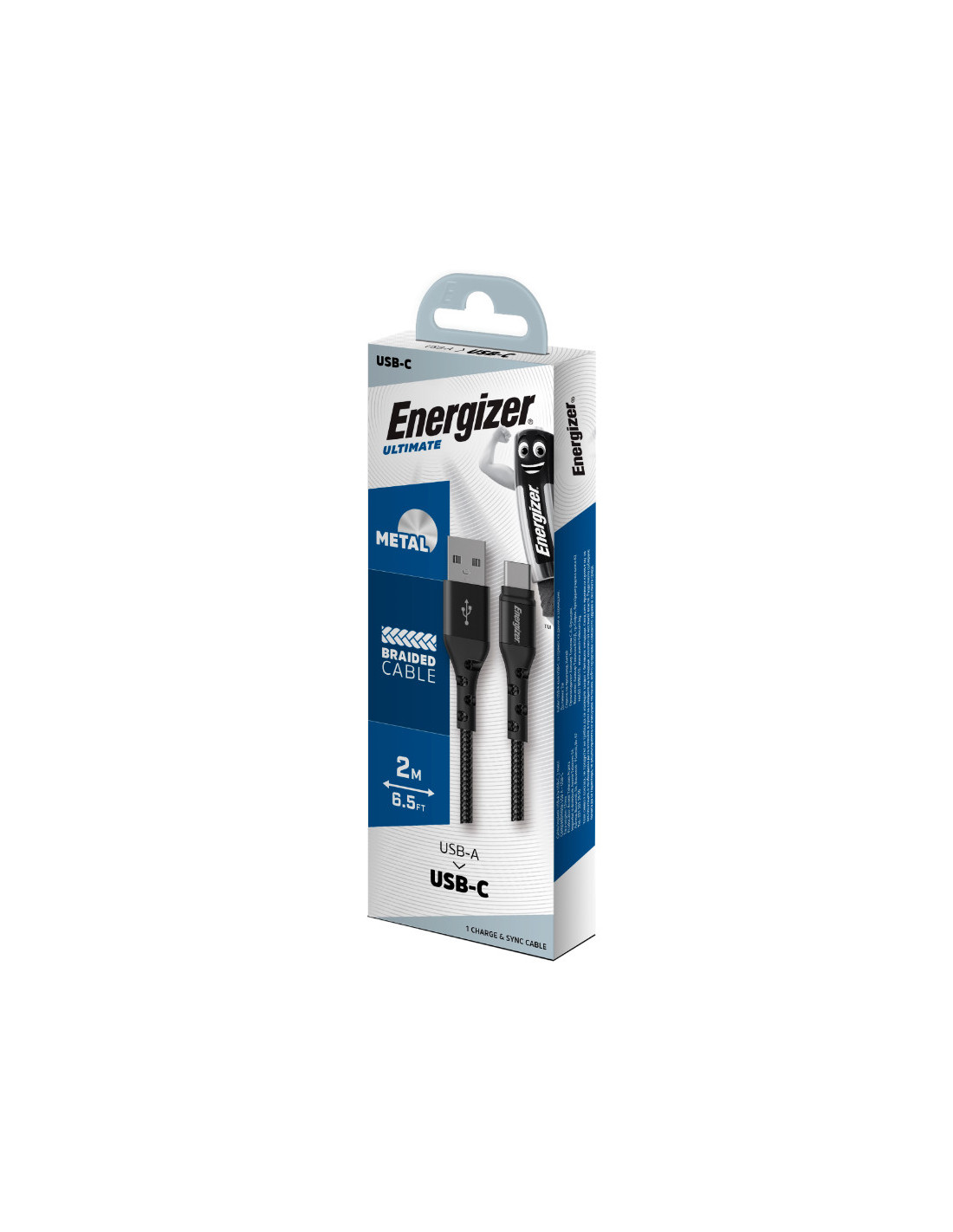 Kabel Energizer Ultimate do ładowania i transmisji danych o długości 200 cm, wyposażony w złącze USB-A na USB-C.