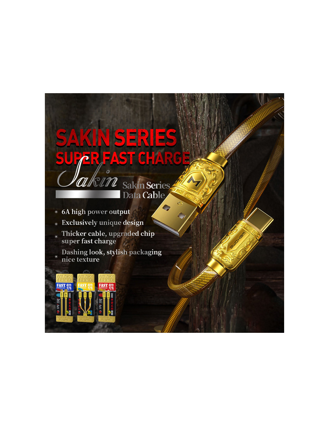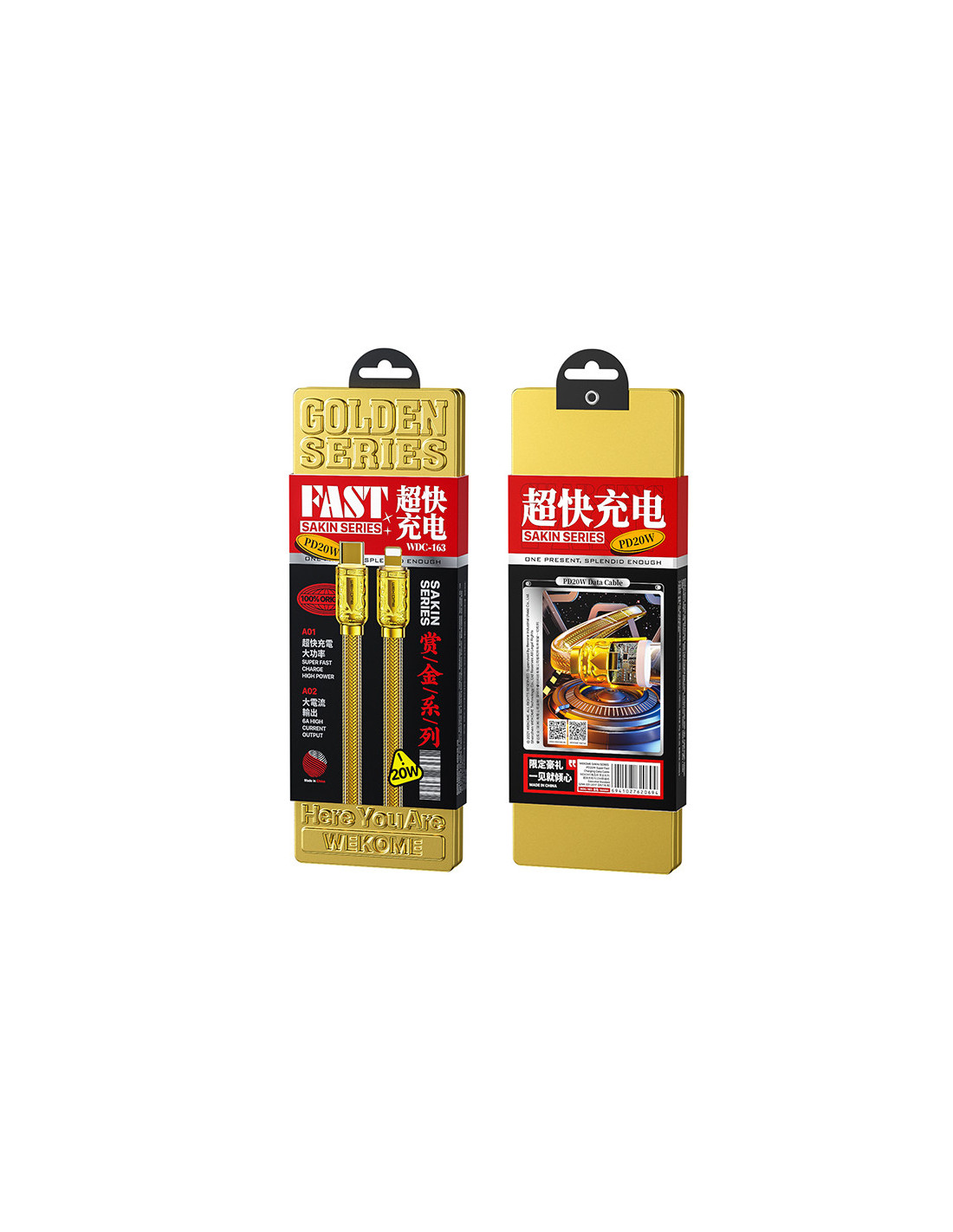 Kabel WEKOME WDC-163 Sakin Series do ładowania i transmisji danych o długości 100 cm, wyposażony w złącze USB-C na Lightning.