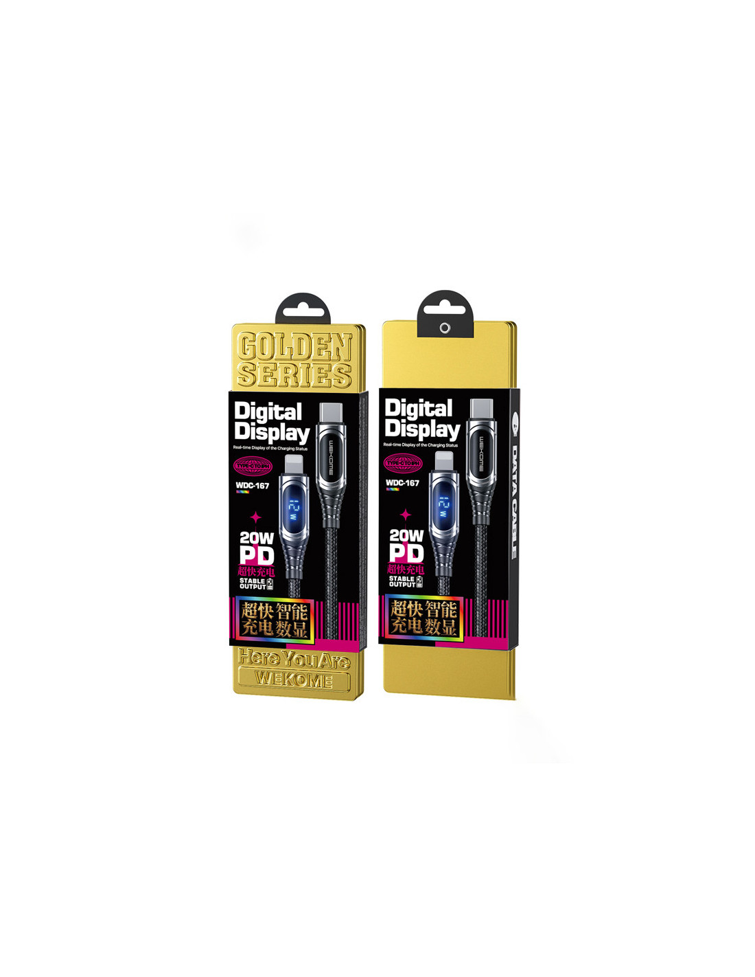 Kabel wyposażony jest w inteligentny wyświetlacz cyfrowy, który pozwala na monitorowanie mocy ładowania w czasie rzeczywistym. Produkt pakowany jest w ozdobne metalowe pudełko.