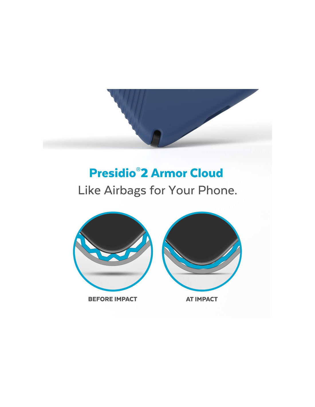 Etui Presidio2 Grip amerykańskiej firmy Speck wykonane w technologii Armor Cloud™ - system specjalnych kapsułek wewnątrz etui działa na podobnej zasadzie, co poduszki powietrze stosowane w samochodach. W momencie upadku na twarde podłoże, kapsułki amortyzują siłę uderzenia przy pomocy skompresowanego w nich powietrza. Rozwiązanie to sprawia, że etui wytrzymuje upadki z wysokości nawet 4 metrów. Podwyższona ramka ekranu chroni jednocześnie wyświetlacz telefonu i pozwala zrównać wierzchnią powierzchnię po założeniu szkła ochronnego.