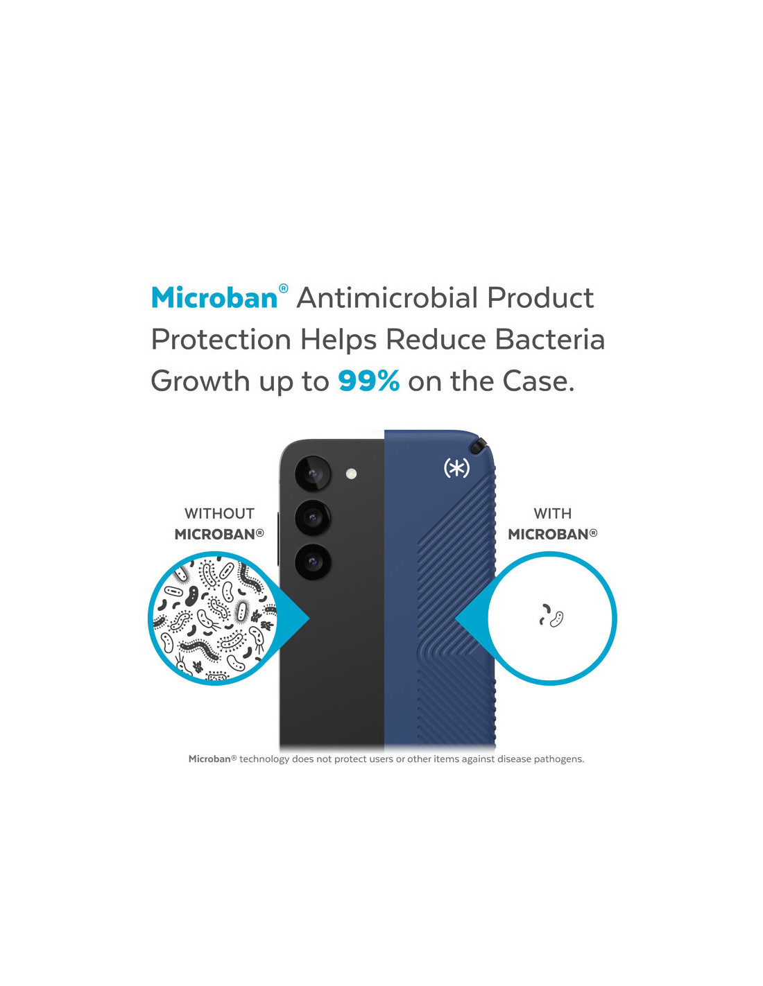 Oryginalna obudowa ochronna Speck z serii Presidio2 Grip oferuje też ochronę antybakteryjną MICROBAN® (światowy lider rozwiązań przeciwdrobnoustrojowych z szerokim portfolio ponad 25 zatwierdzonych technologii). Aktywny składnik wbudowany w strukturę etui powstrzymuje 99% bakterii, które gromadzą się na powierzchni etui. Technologia MICROBAN® zapewnia w ten sposób dożywotnią ochronę przed bakteriami powodującymi plamy i nieprzyjemne zapachy oraz działa na poziomie komórkowych, aby utrzymać czystość obudowy.