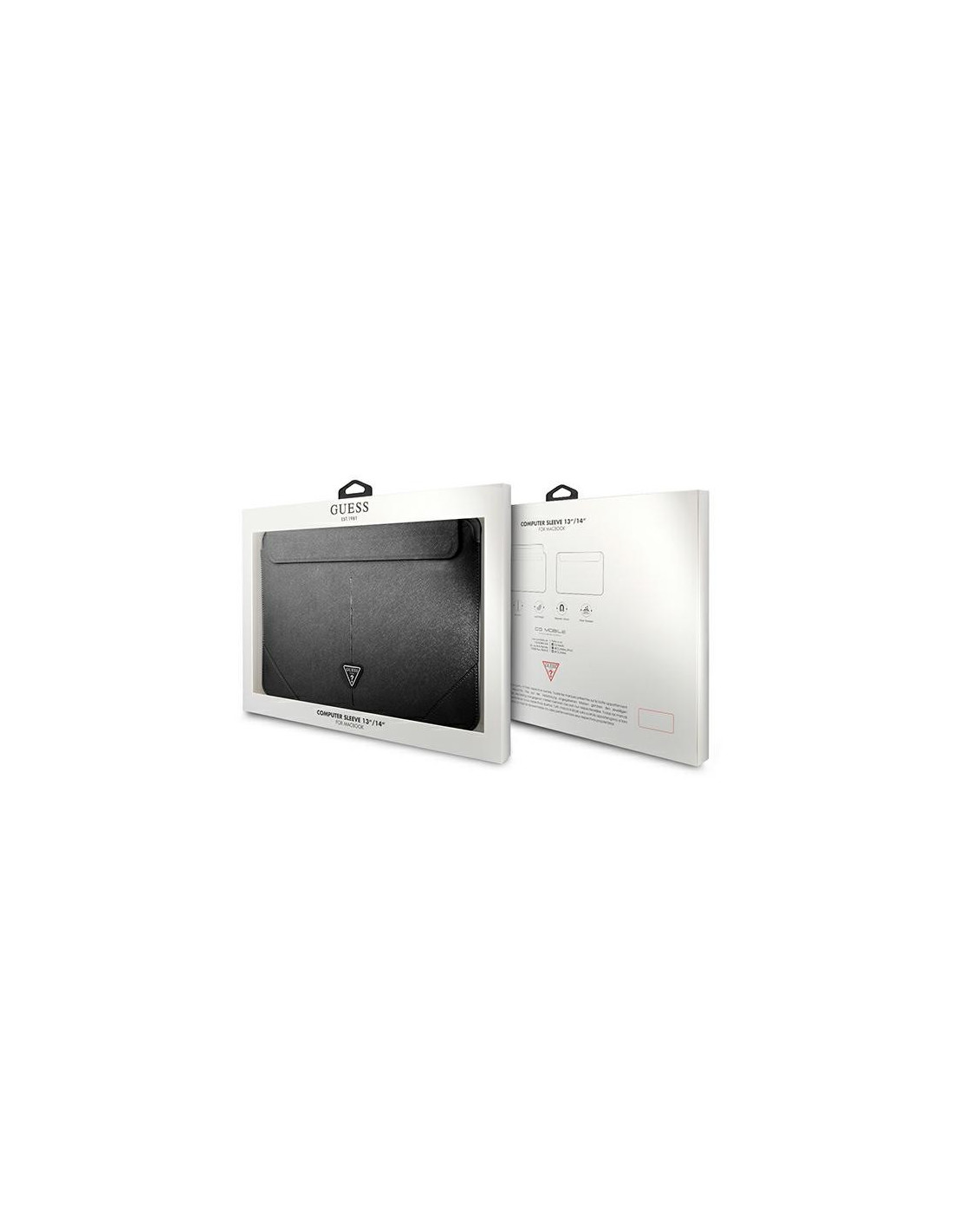 Guess Saffiano Triangle Logo Sleeve etui na notebooka o przekątnej 13/14 cali. Wykonane z przyjemnej w dotyku fakturze ze skóry ekologicznej saffiano. Trójkątne logo Guess.