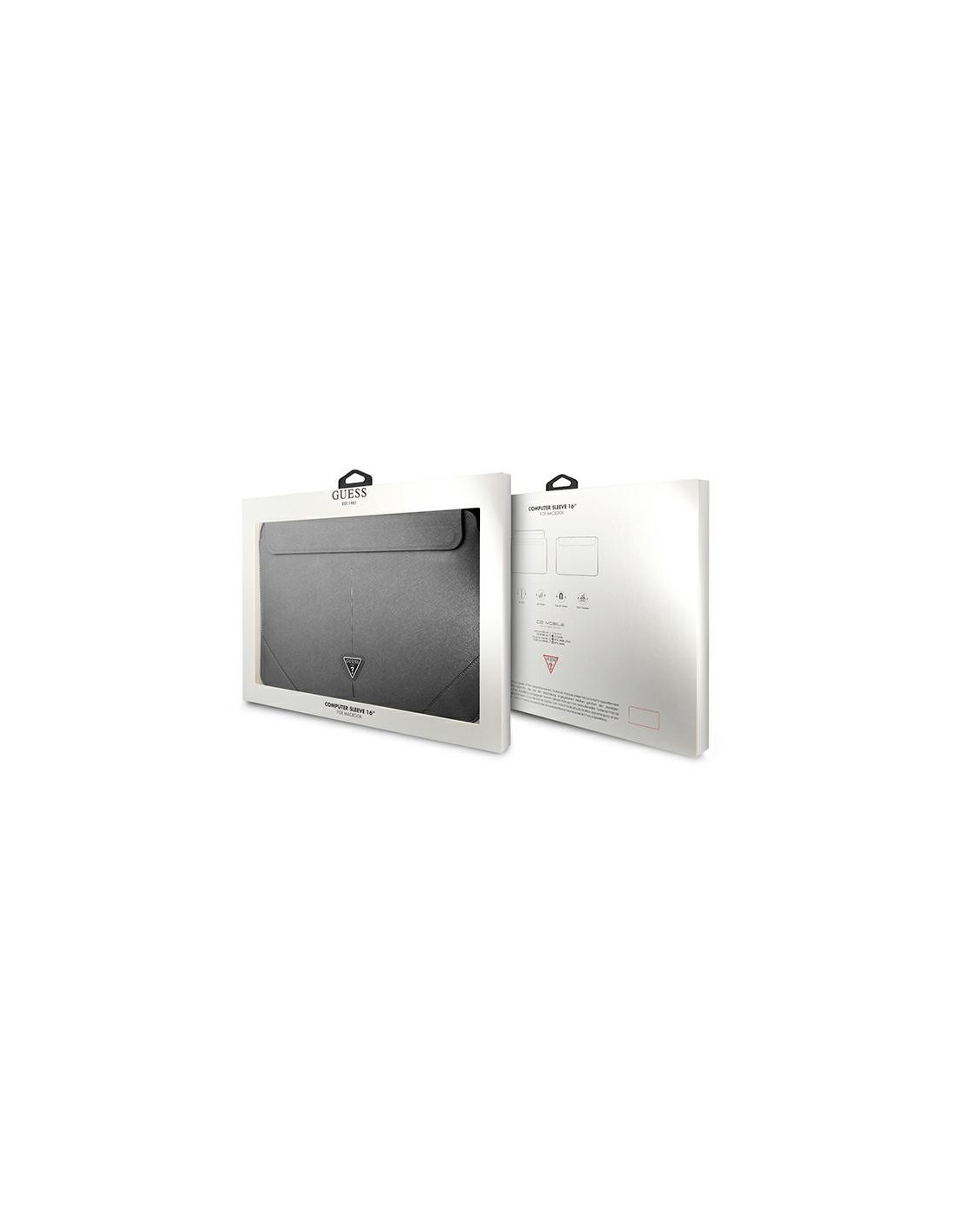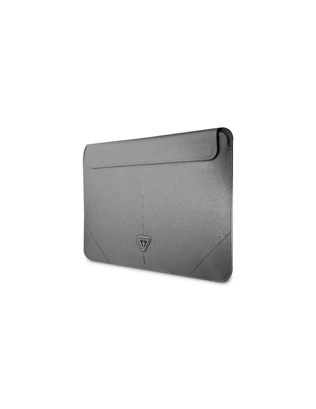 Guess Saffiano Triangle Logo Sleeve etui na notebooka o przekątnej 16 cali. Wykonane z przyjemnej w dotyku fakturze ze skóry ekologicznej saffiano. Trójkątne logo Guess.