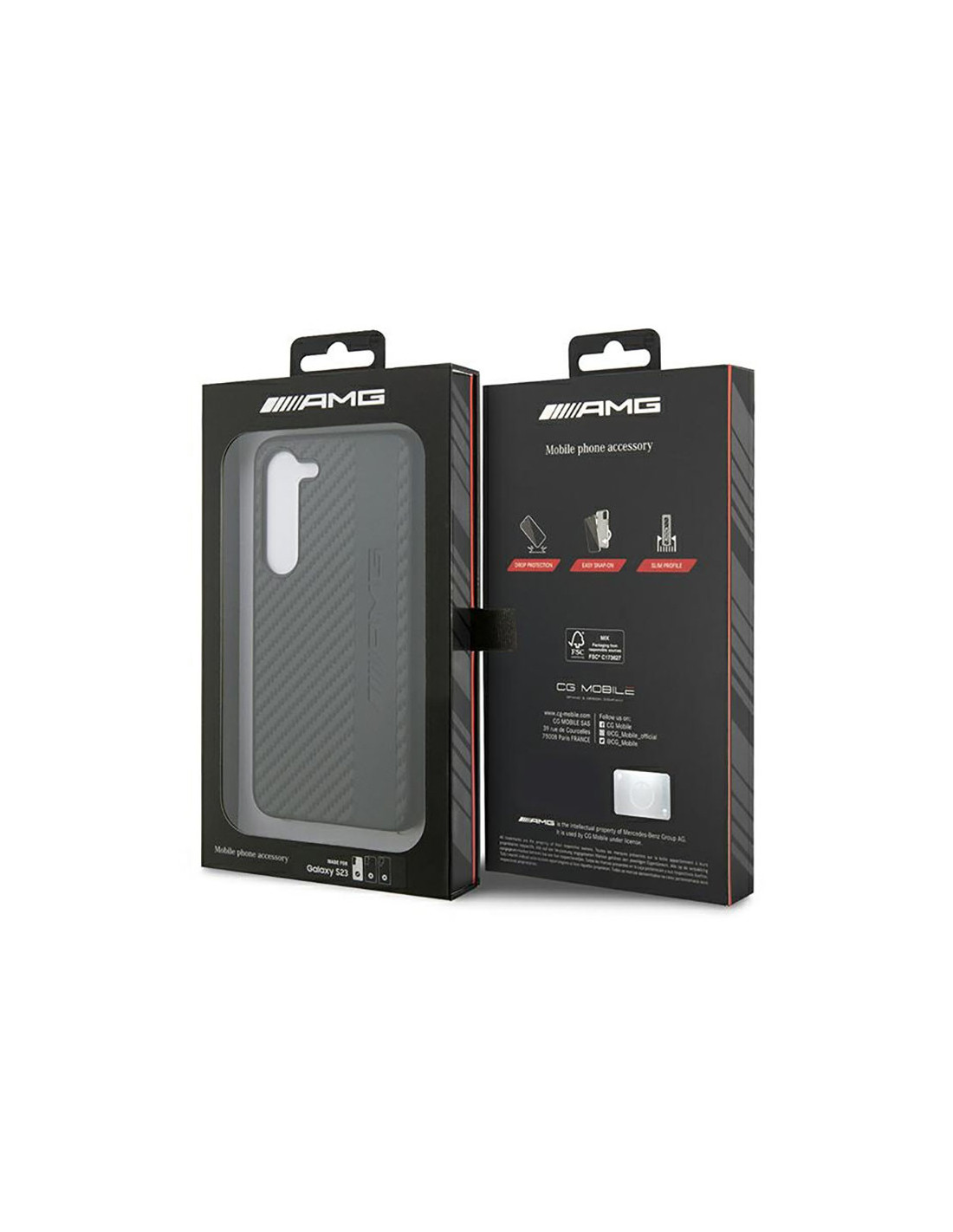 Etui serii Carbon Stripe & Embossed wykonano w trosce o najmniejszy szczegół oraz perfekcyjne dopasowanie do smartfona. Etui zostało wykonane z włókna węglowego, a krawędzie z elastycznego poliuretanu, który zapewnia łatwy montaż. Wytłoczone pionowe logo AMG to stylowy detal sprawiający, że kolekcja nadaje wszystkim urządzeniom klasyczny, elegancki wygląd.