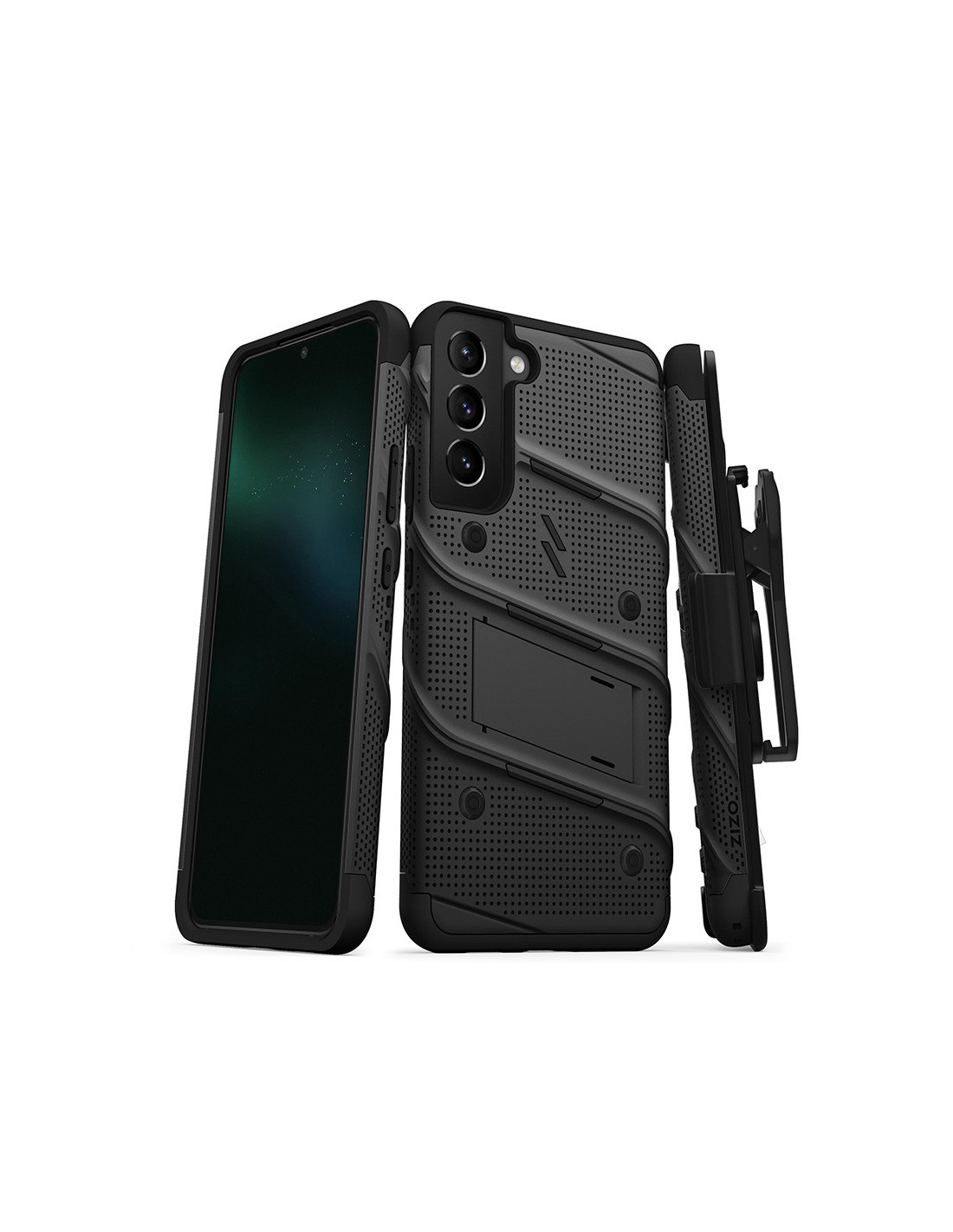 Etui ZIZO BOLT oferuje podwyższony stopień ochrony Samsunga Galaxy S22+, zachowując jednocześnie jego ergonomiczny kształt i funkcjonalność. Opatentowana konstrukcja (PATENT NO: D795,239) wytrzymuje upadki z wysokości ponad 3,5 metra. Etui ZIZO BOLT Series zdobyło nagrodę CNET Toughest Case Award podczas CES Drop Test 2018 oraz 2019.