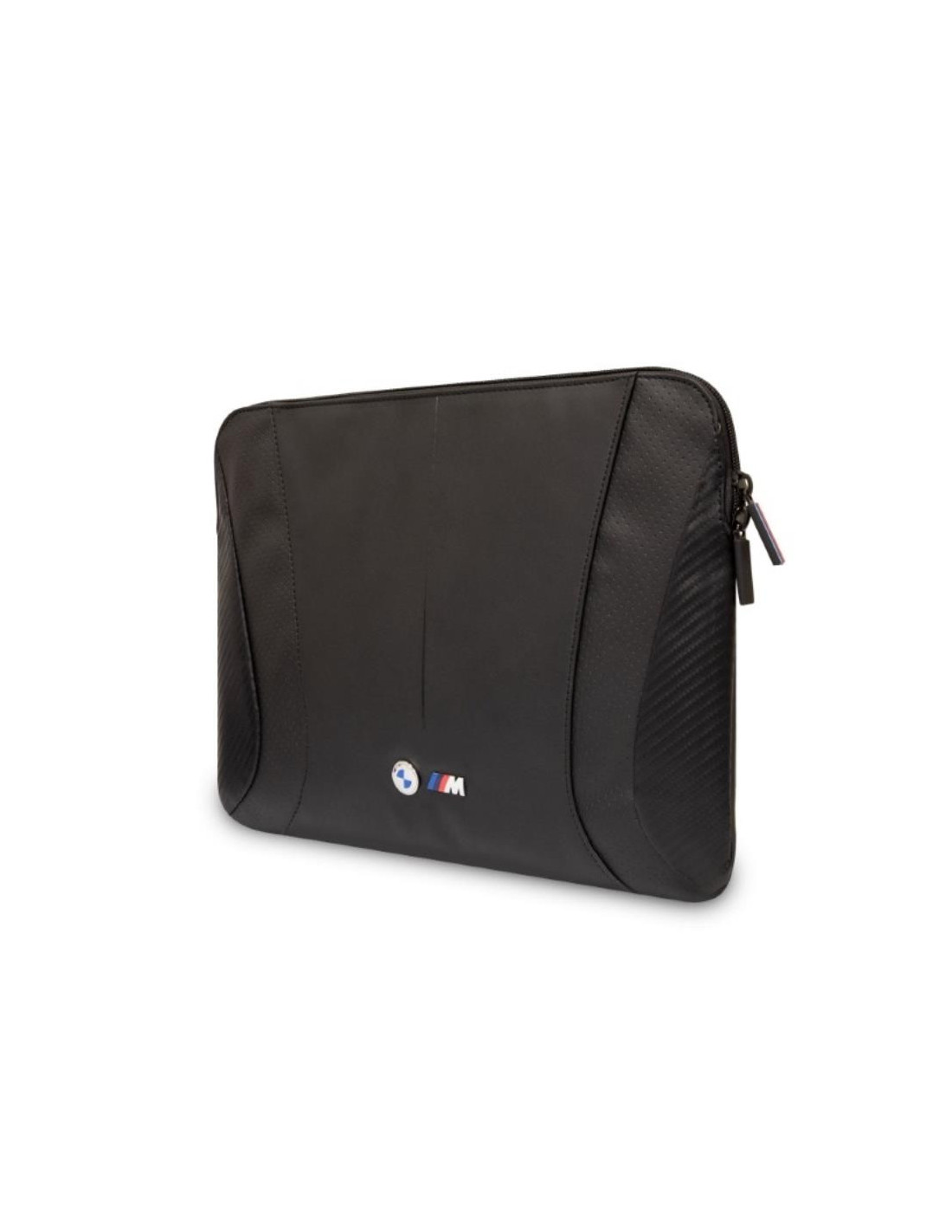 BMW Carbon&Perforated to pokrowiec wykonany z połączenia wysokiej jakości nylonu i skóry ekologicznej o różnych fakturach. Akcesorium ozdobiono logiem M Power oraz logotypem marki BMW, które jednocześnie są potwierdzeniem autentyczności produktu.