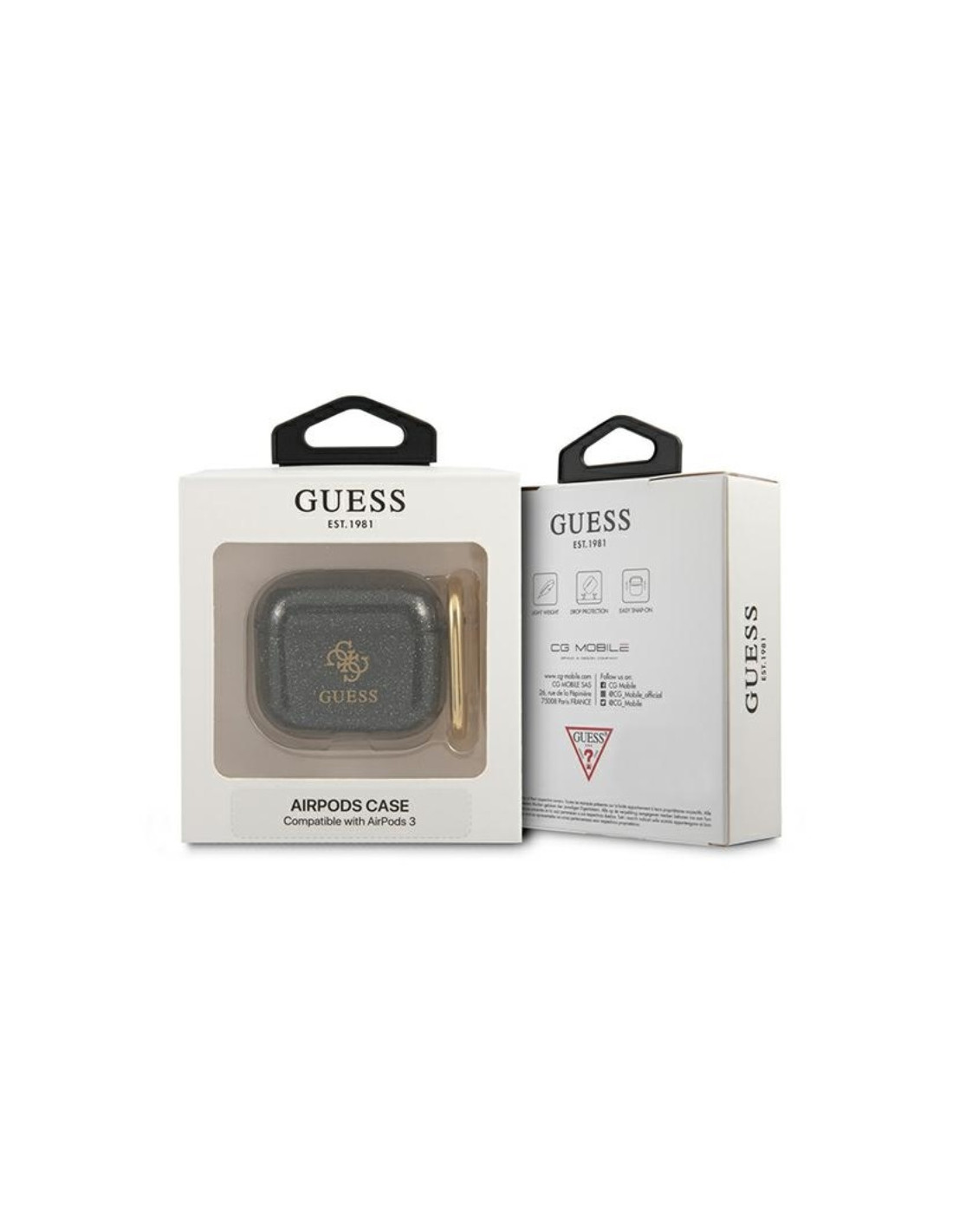 Guess 4G Glitter to etui słuchawek AirPods 3 gen z dużym, złotym logo Guess 4G.