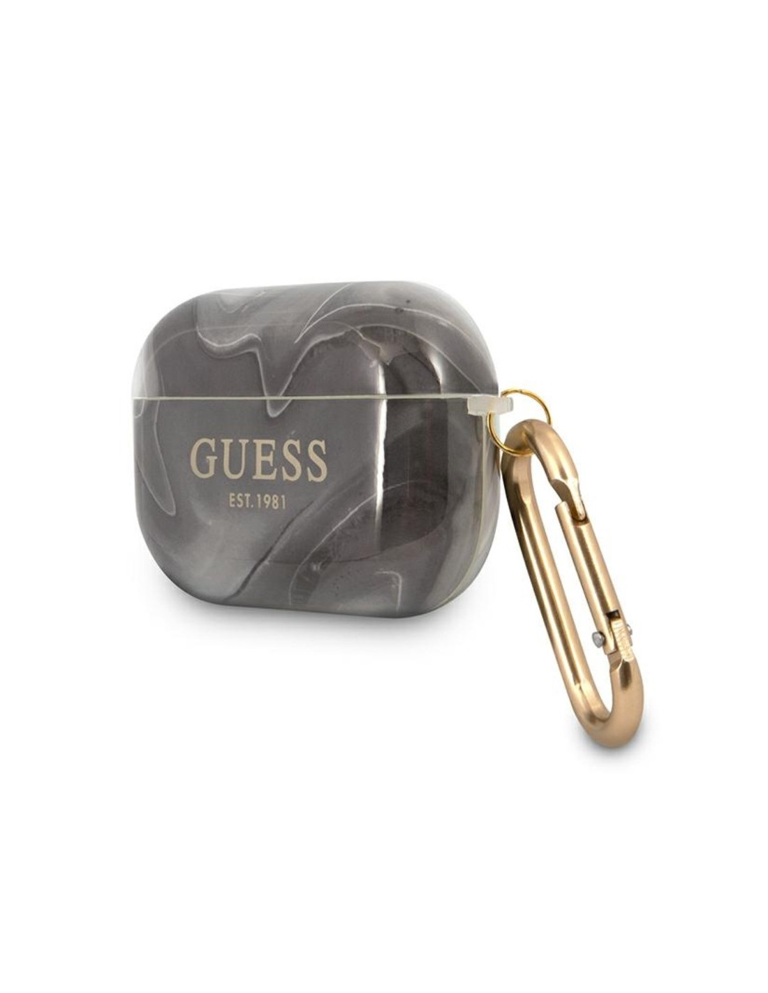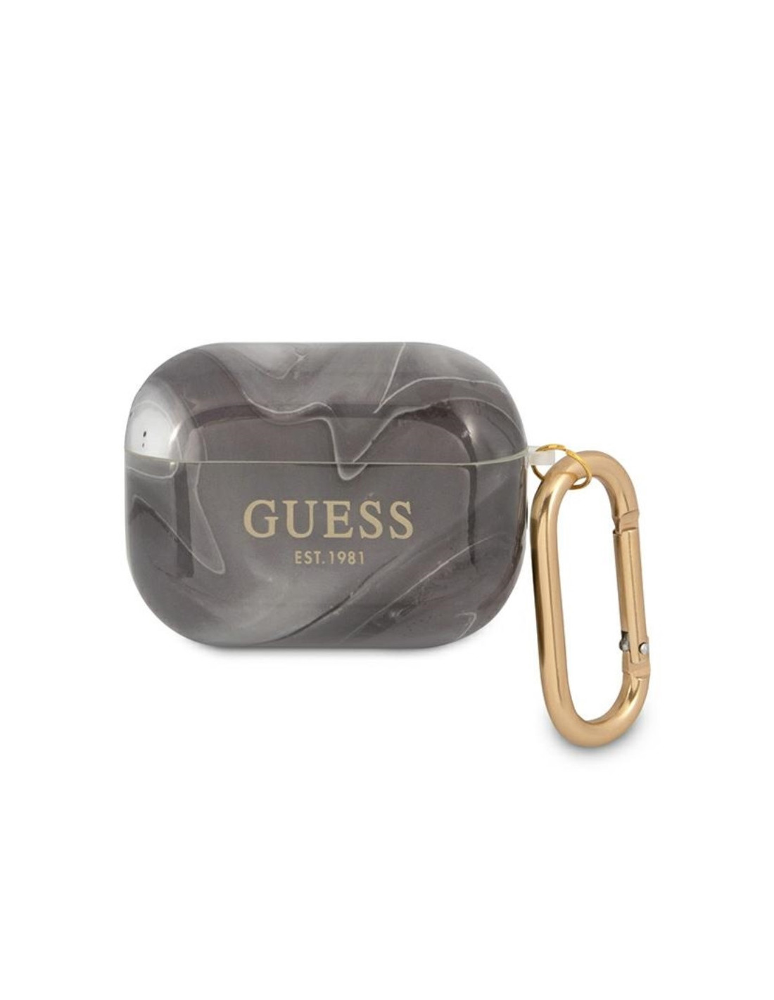 Etui do słuchawek AirPods Pro. wykonane z wysokiej jakości TPU, chroniące przed uszkodzeniem i zarysowaniami. Idealnie dopasowane. Całość ozdobiona motywem marmuru oraz sygnowane złotym logo Guess Est.