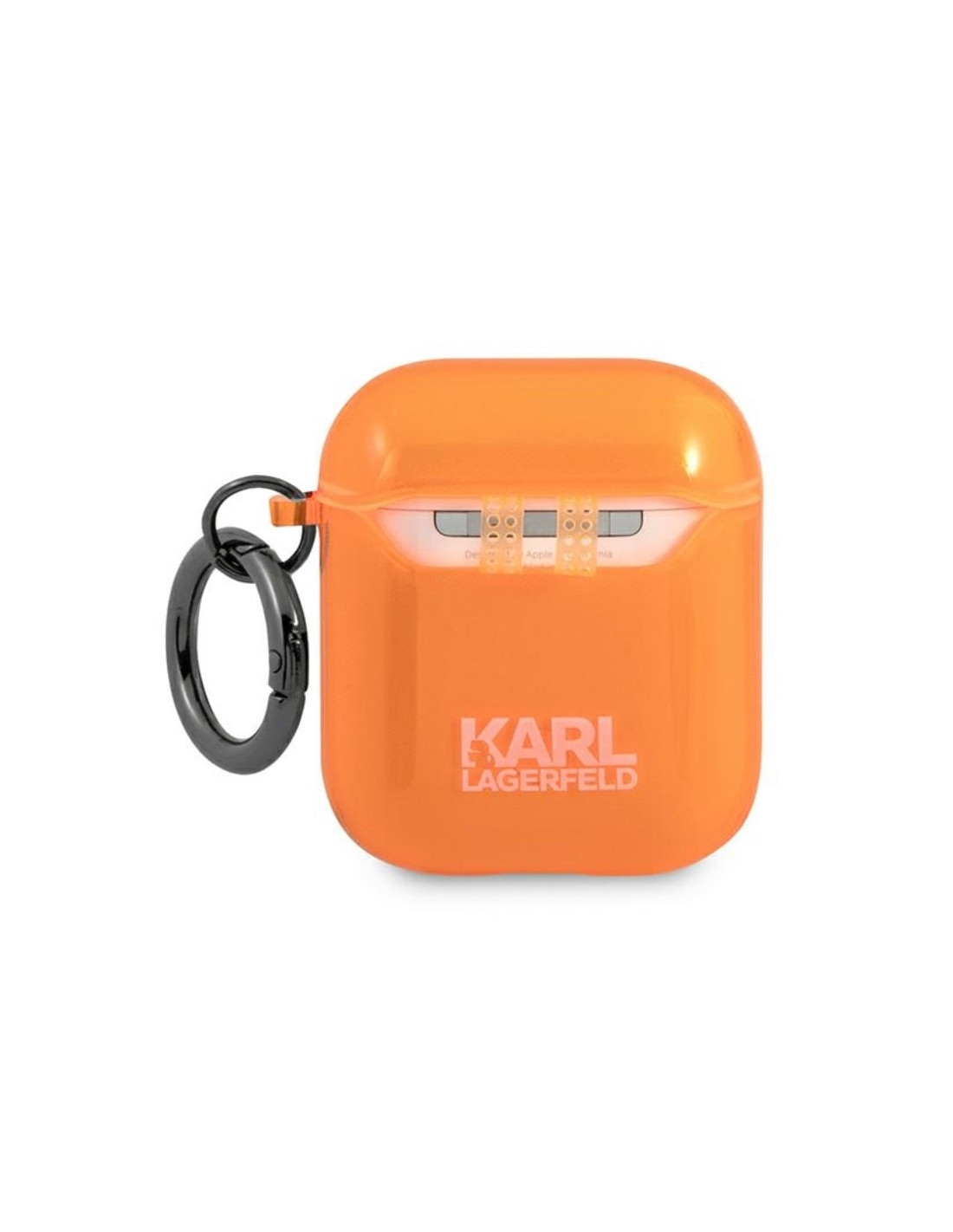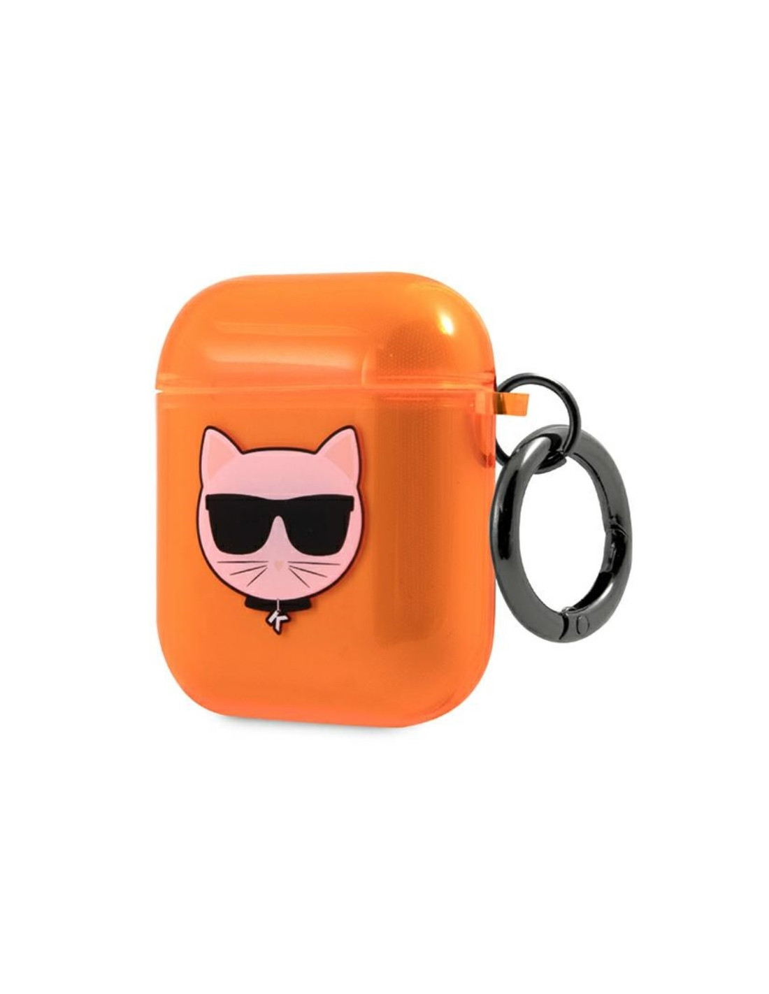 Karl Lagerfeld Choupette Head Glitter to etui słuchawek Airpods 1&2 gen z grafiką przedstawiającą kotkę Choupette.
