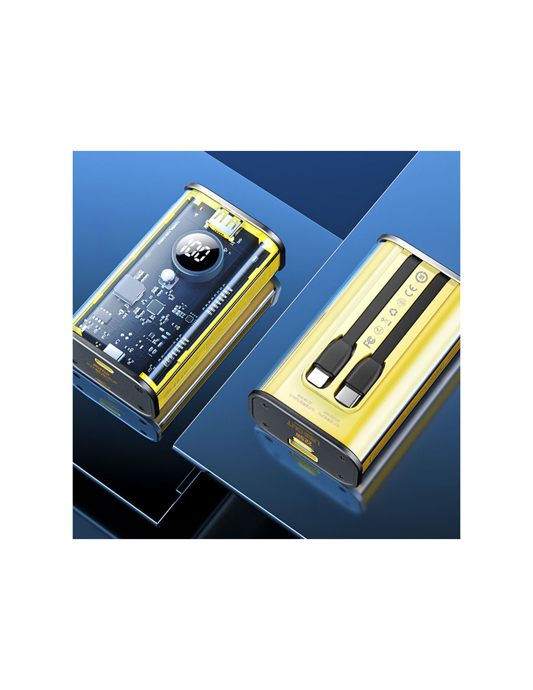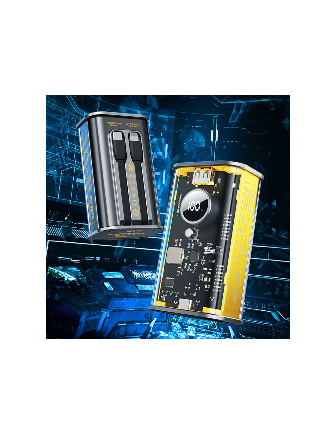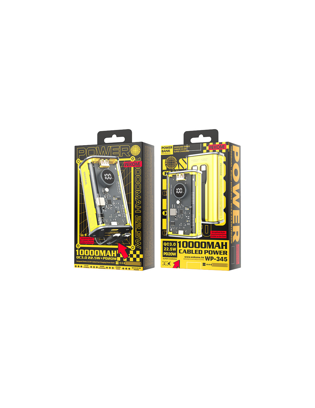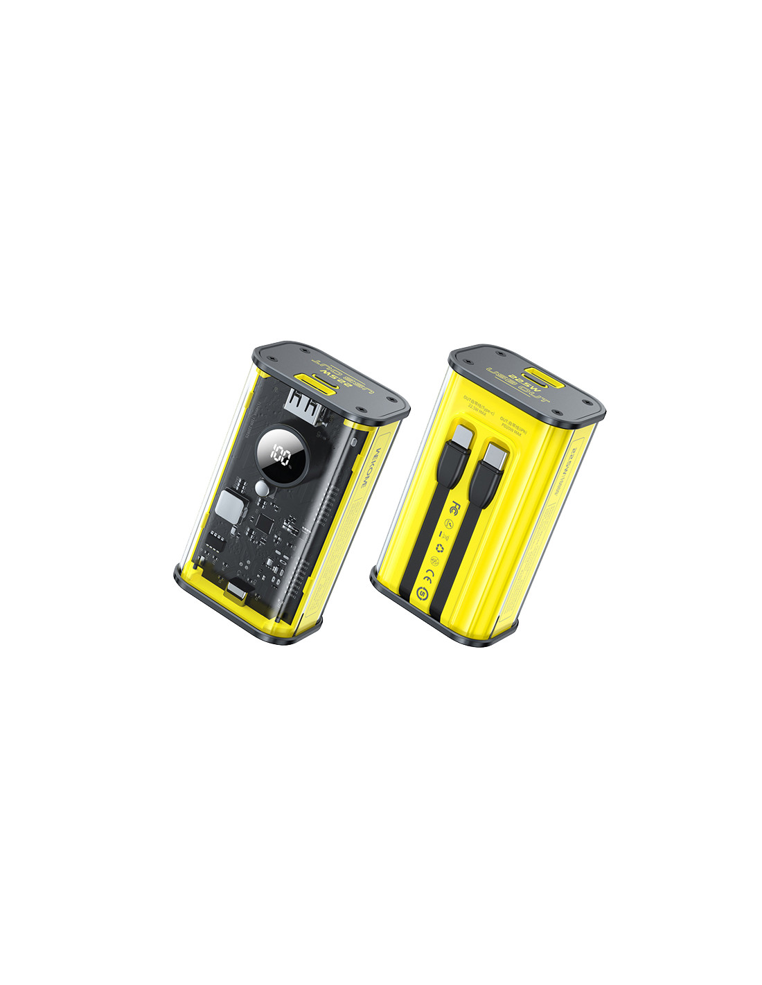 Powerbank 10000 mAh Fast Charging Z Wbudowanym Kablem USB-C & Lightning PD 20W + QC 22.5W Wekome Wp-345 Vanguard Series Żółty