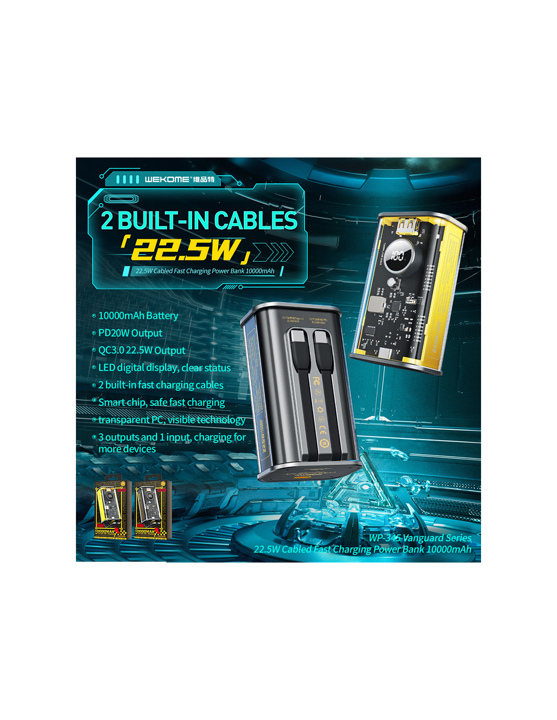 Power bank WEKOME WP-345 Vanguard Series to niezwykle stylowa i wytrzymała konstrukcja, która pozwala na wygodne i bezpieczne użytkowanie w każdych warunkach.