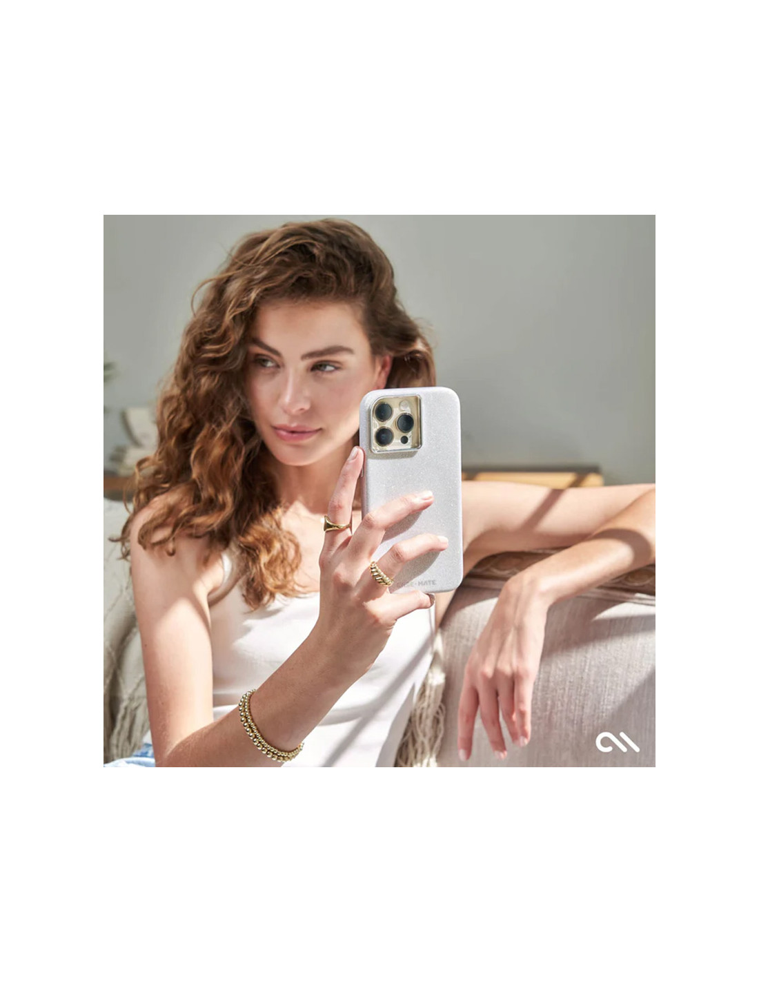Smukłe i eleganckie etui ochronne do iPhone 15 Pro Max zachwycające mieniącymi się w świetle opalizującymi drobinkami kryształów. Wbudowane magnesy sprawiają, że ładowarka MagSafe dopasowuje się za każdym razem precyzyjnie. Powierzchnia etui została ponadto zabezpieczona przed bakteriami, dzięki czemu pozostaje ono cały czas czyste, nie żółknie i jest przyjemne w użytkowaniu.