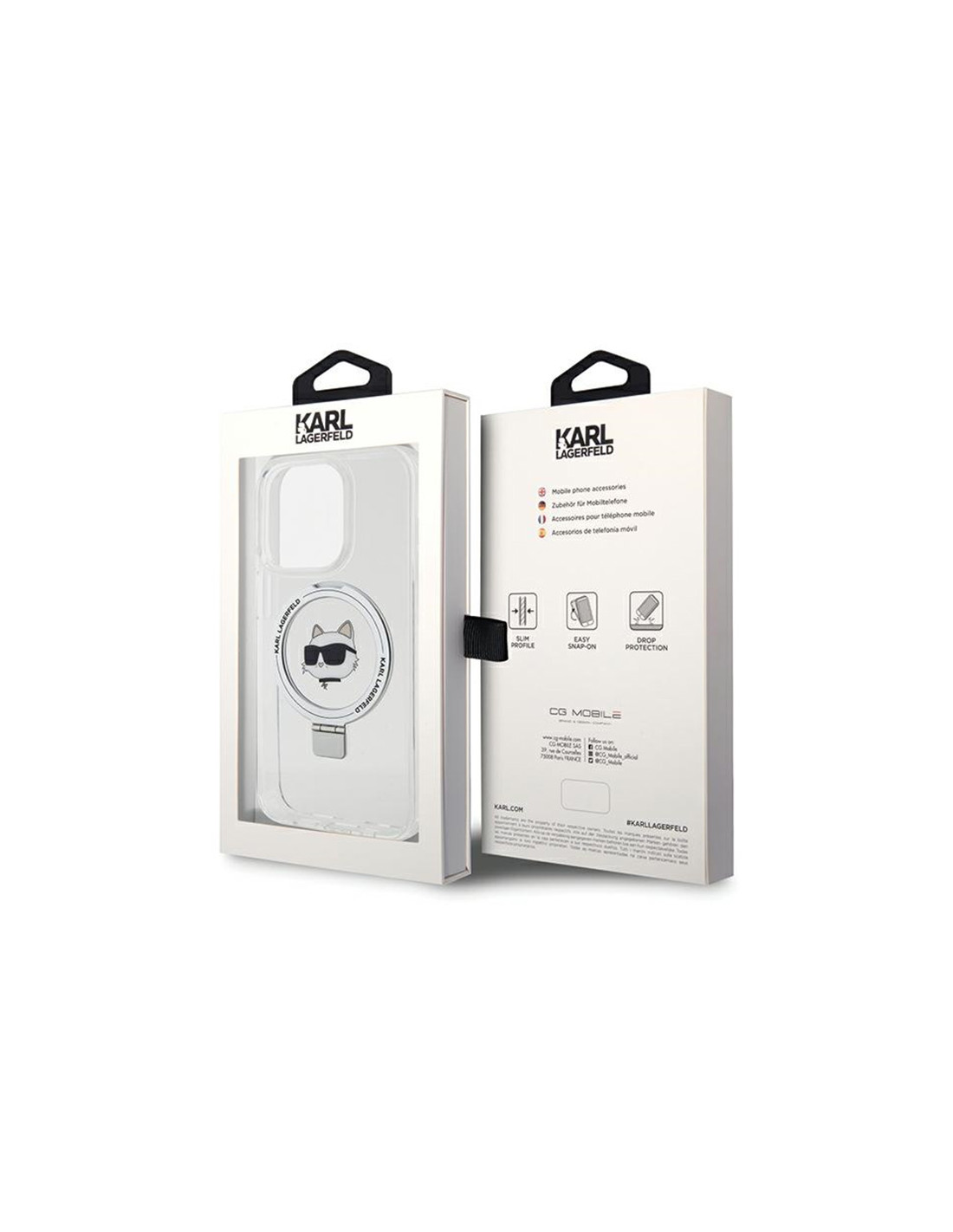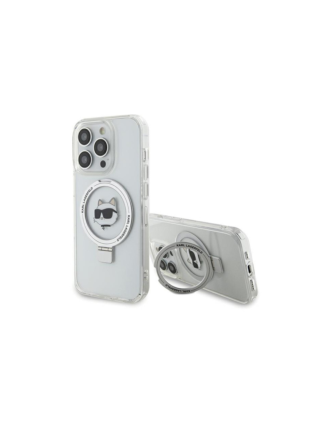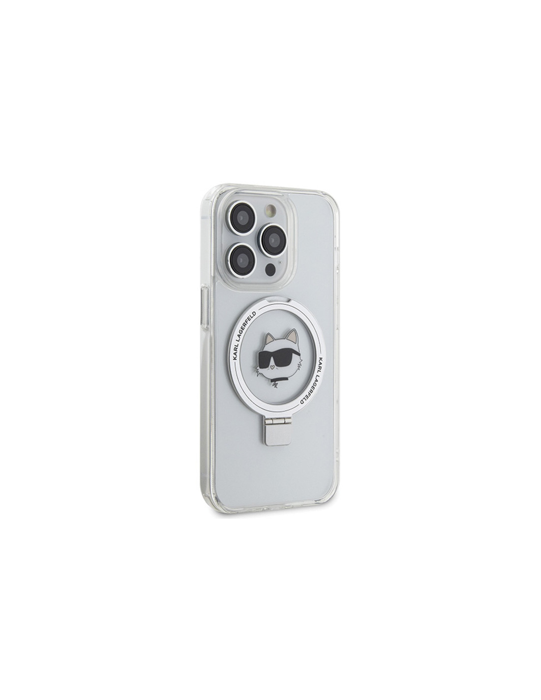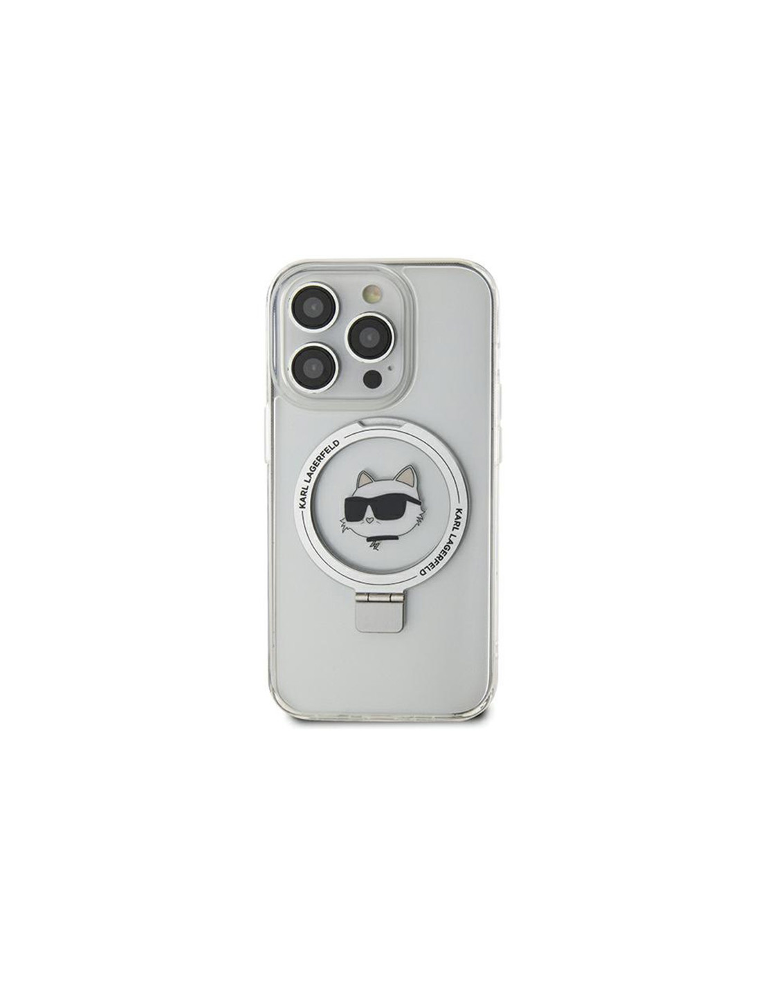 Etui Do iPhone 15 Pro Max Karl Lagerfeld Ring Stand Choupette Head MagSafe Biały