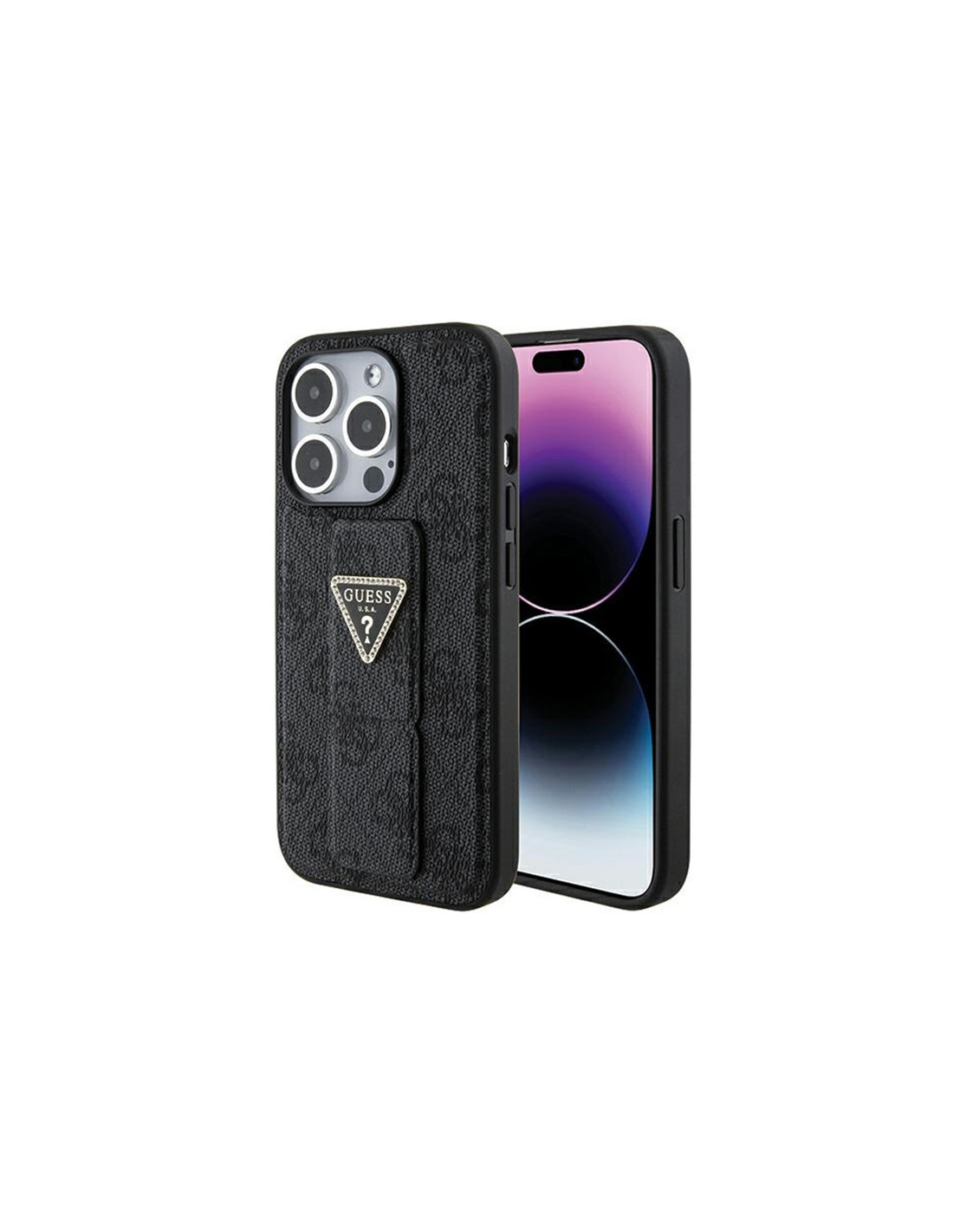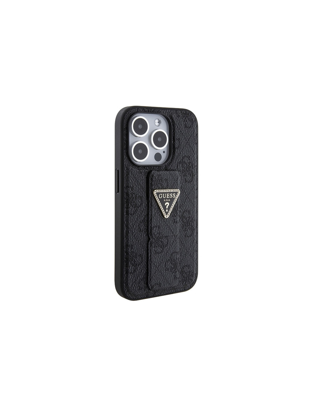 Etui Do iPhone 15 Pro Max Guess Grip Stand 4G Triangle Strass Logo Czarny