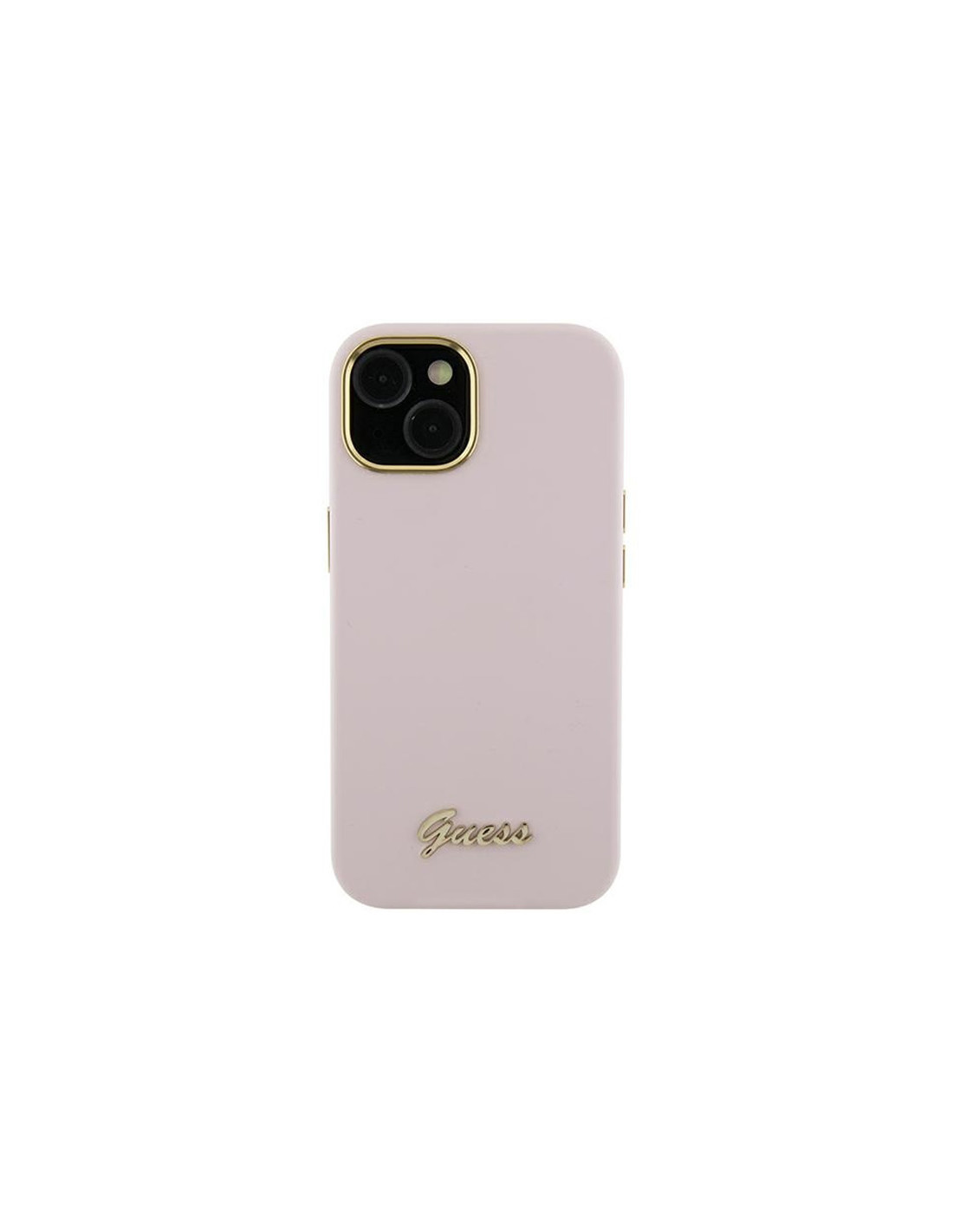 Etui Do iPhone 15 Pro Max Guess Silicone Script Metal Logo & Frame Różowy