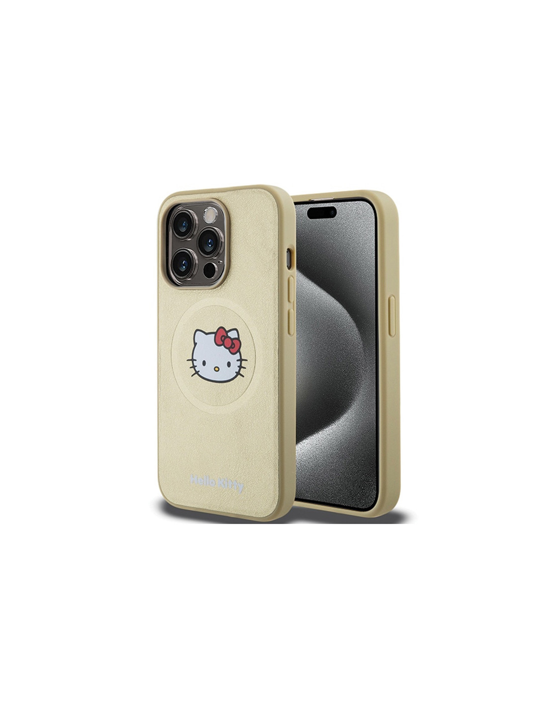 Etui Do iPhone 15 Pro Hello Kitty Leather Kitty Head MagSafe Złoty