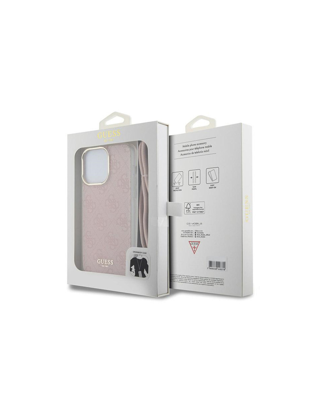 Etui Do iPhone 15 Pro Guess Crossbody Cord 4G Print Różowy