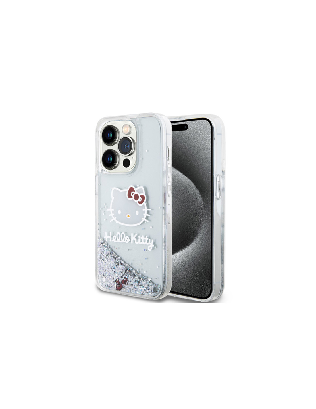 Etui Do iPhone 14 Pro Max Hello Kitty Liquid Glitter Charms Kitty Head Srebrny