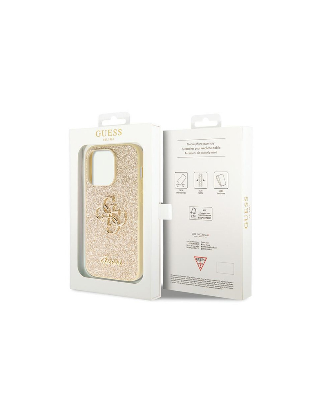 Etui Do iPhone 14 Pro Guess Glitter Script Big 4G Złoty