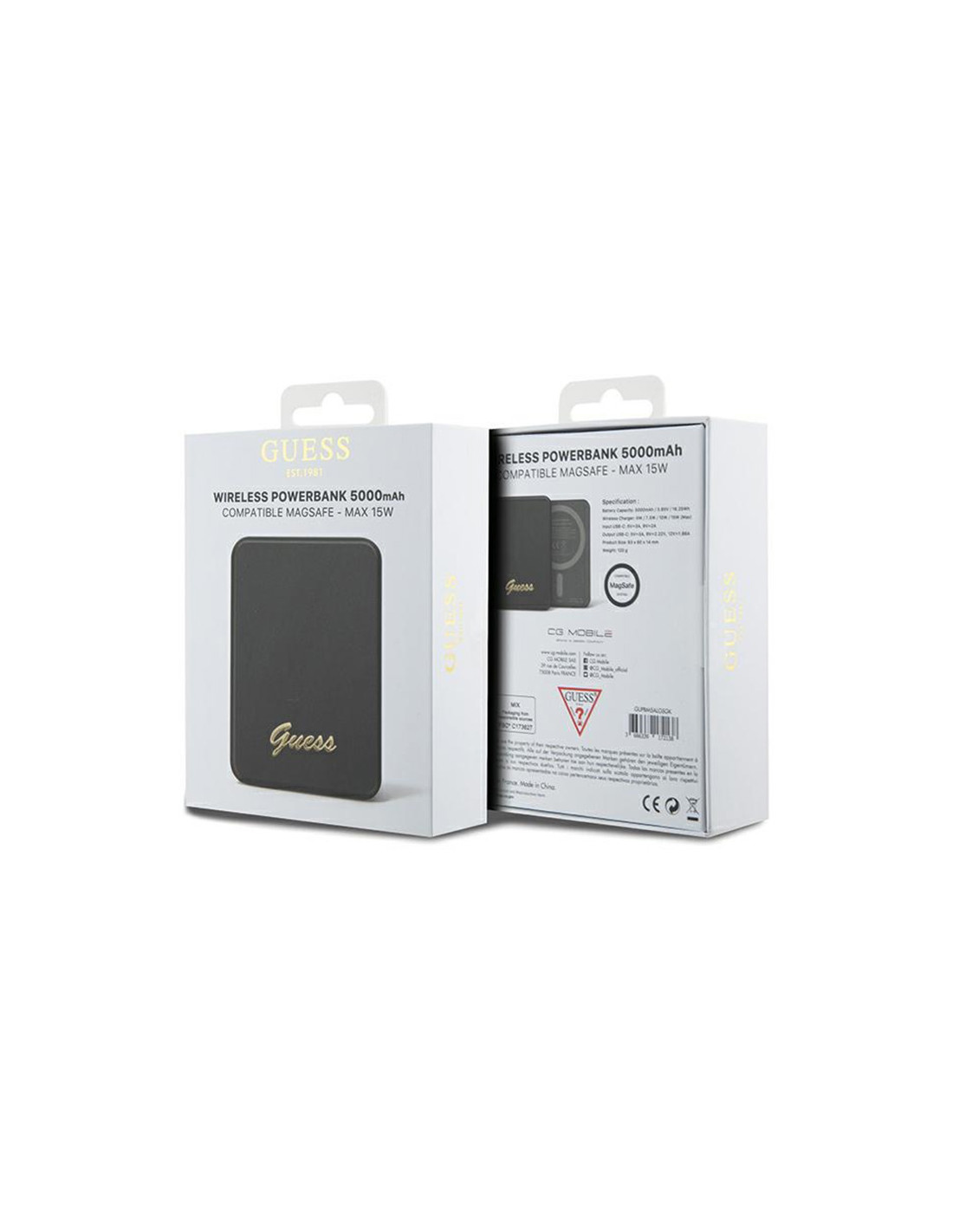 Powerbank indukcyjny 5000 mAh 15W MagSafe Guess Metal Script Logo MagSafe Czarny