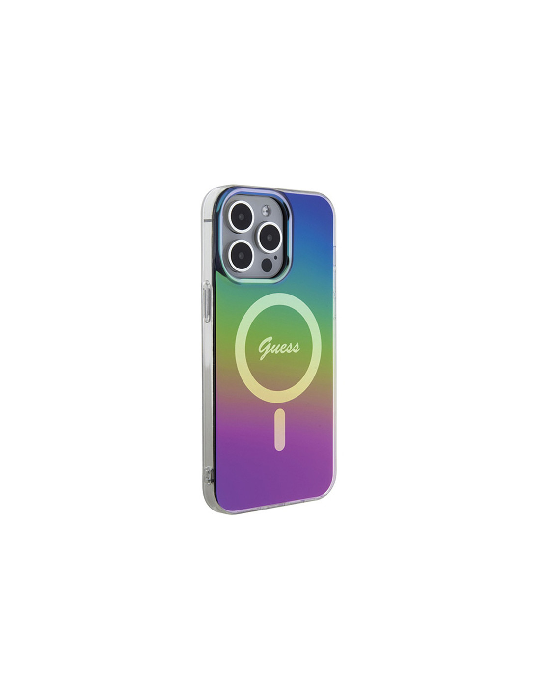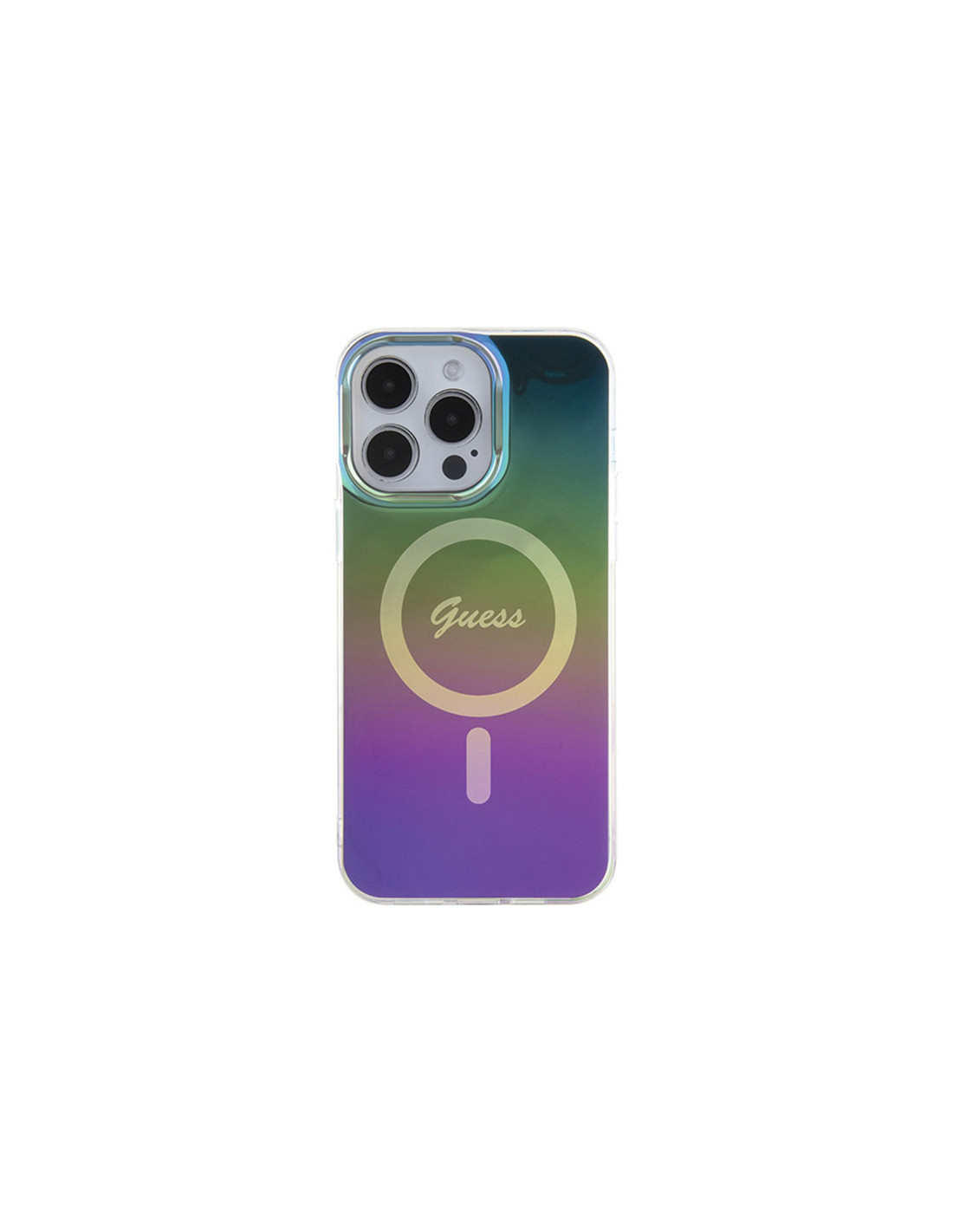 Guess IML Iridescent MagSafe to wysokiej jakości, oryginalne etui, zapewniające ochronę przed porysowaniem i uszkodzeniami urządzenia. Pokrowiec wyróżnia się wysoką jakością wykonania, niesamowitą funkcjonalnością oraz przepięknym wyglądem. Kolekcja charakteryzuje się użyciem delikatnych kolorów pastelowych, które płynnie przenikają się nawzajem, tworząc efekt gradientu. Dodatkową ozdobą jest centralnie umieszczone klasyczne logo Guess, Obudowa zapewnia dostęp do wszystkich klawiszy funkcyjnych, gniazd i portów telefonu nie ograniczając jego funkcjonalności, dzięki czemu można w pełni korzystać ze swojego smartfona. Etui posiada wewnątrz magnetyczny pierścień kompatybilny z akcesoriami MagSafe gwarantując łatwe i szybkie ładowanie. Cechy produktu: · Wbudowany pierścień magnetyczny kompatybilny z ładowarką MagSafe · Perfekcyjne dopasowanie · Wykonanie z wytrzymałego PC/TPU · Efekt gradientu · Osłona przed zadrapaniem telefonu z tyłu oraz po bokach · Logo Guess · Dostęp do wszystkich klawiszy funkcyjnych, gniazd i portów telefonu · Etui wyprodukowane na licencji Guess *UWAGA: Ładowarka MagSafe nie jest częścią zestawu