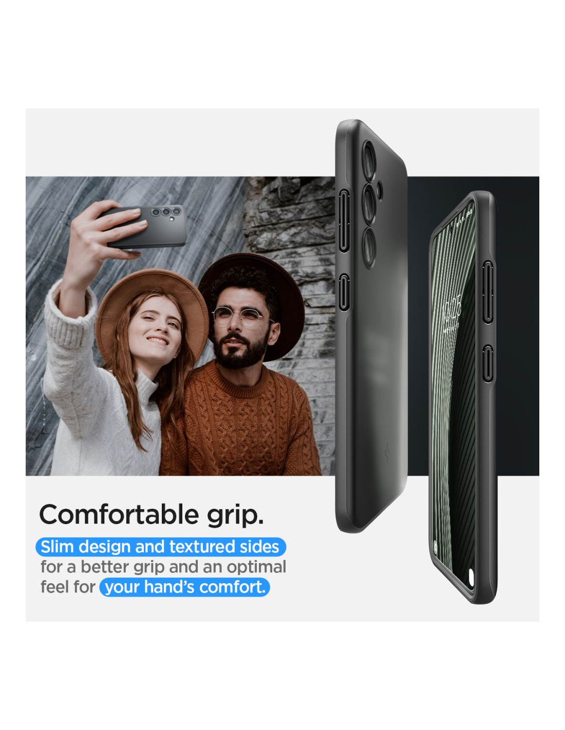 Lekkie i ultra cienkie (1.55mm) etui ochronne Thin Fit marki Spigen. Wykonane z TPU oraz wytrzymałego, lekko elastycznego poliwęglanu, który zapewnia niezawodną ochronę Twojego urządzenia oraz poprawia jego chwyt w dłoni. Produkt jest idealnie dopasowany, w pełni funkcjonalny, nie ogranicza dostępu do portów zewnętrznych i skutecznie chroni telefon przed zarysowaniami czy niewielkimi upadkami. Thin Fit kusi nowoczesnym, minimalistycznym wzornictwem!