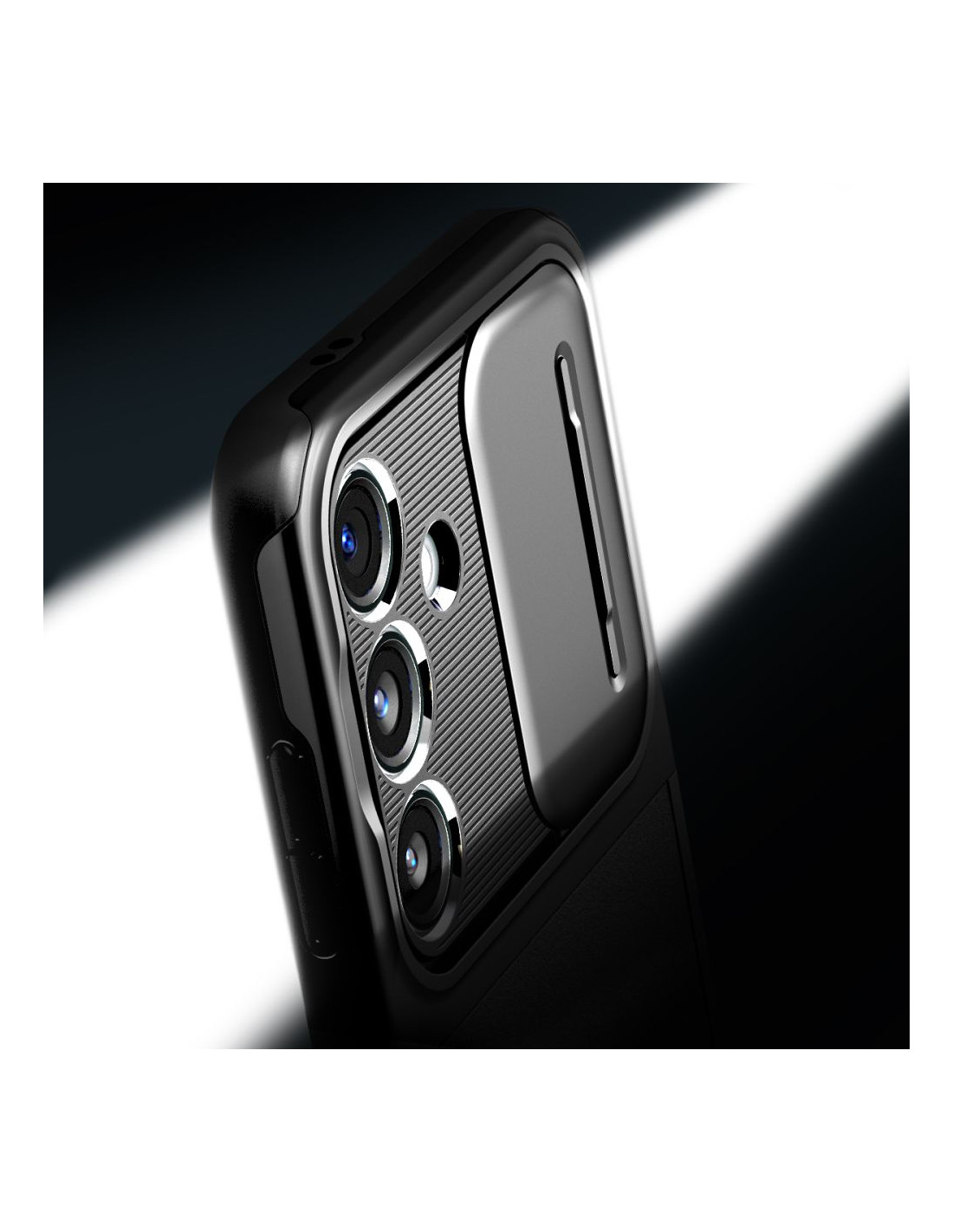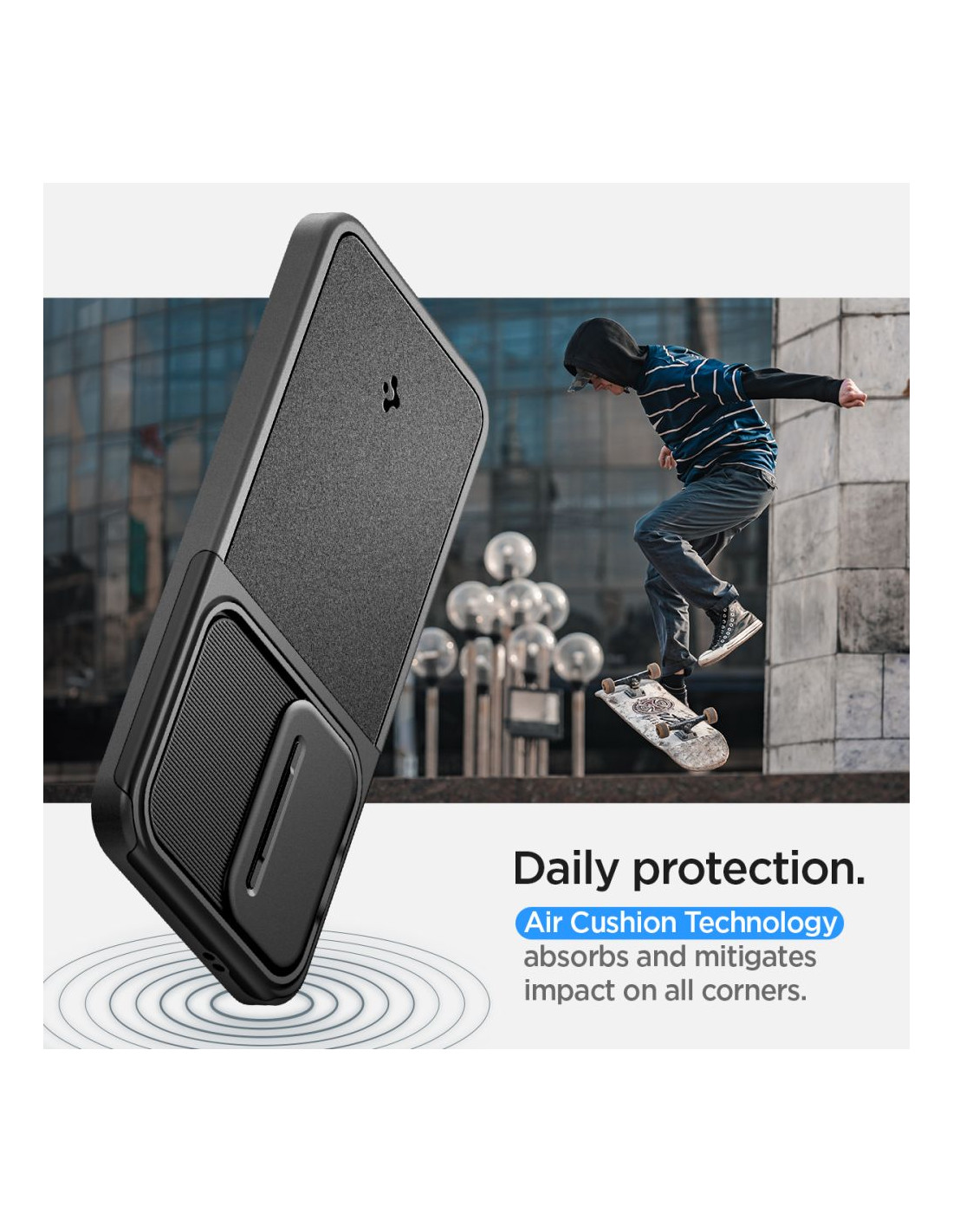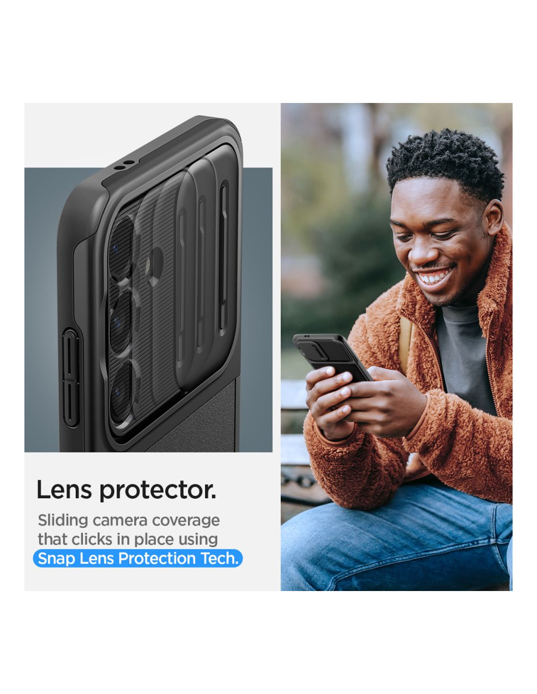 Precyzyjnie wykonane etui to połączenie miękkiej i elastycznej nakładki z TPU oraz wygodnego w użyciu slidera z PC. Praktyczna osłona zabezpieczy obiektyw przed zarysowanymi i innymi uszkodzeniami w trakcie codziennego użytkowania.