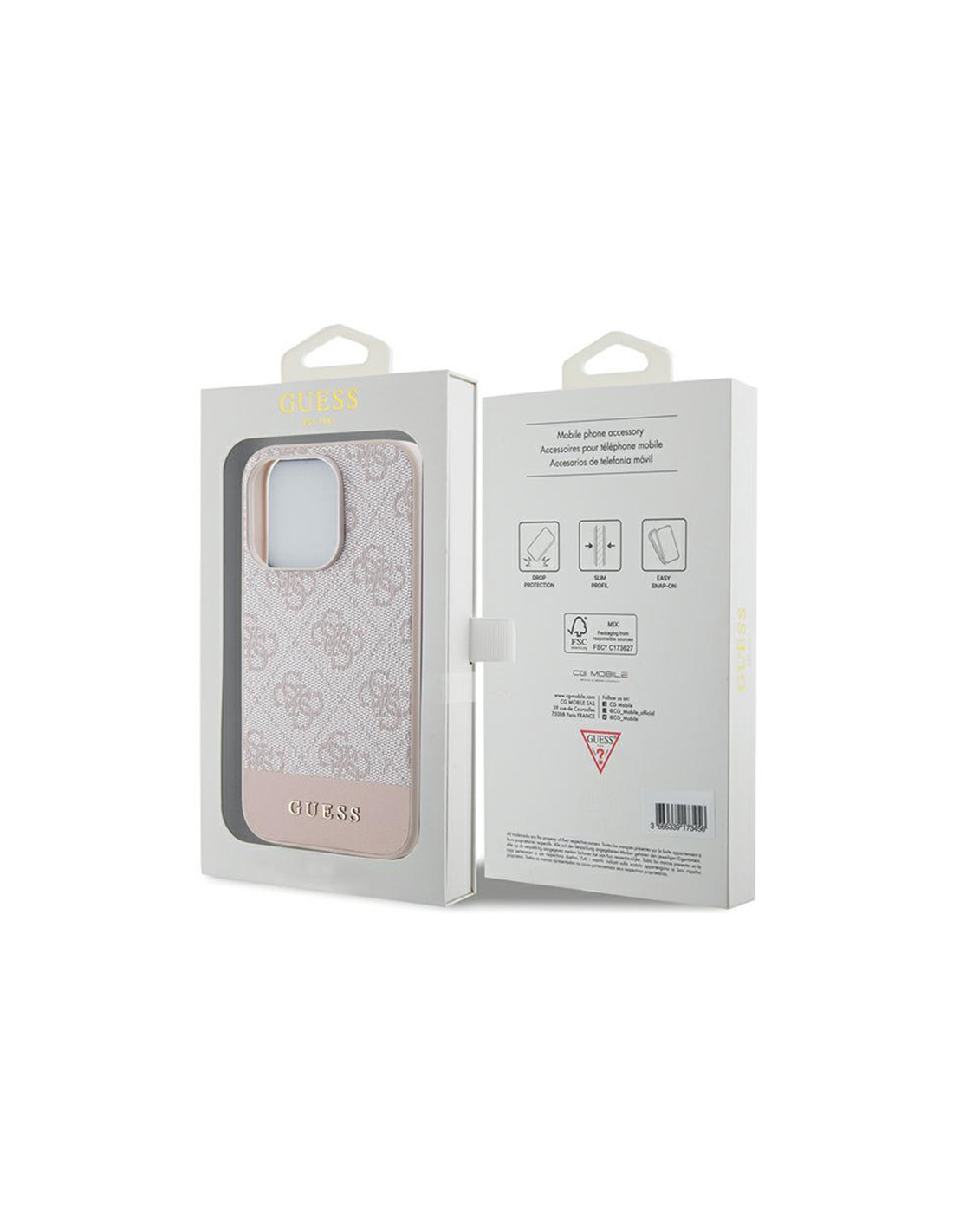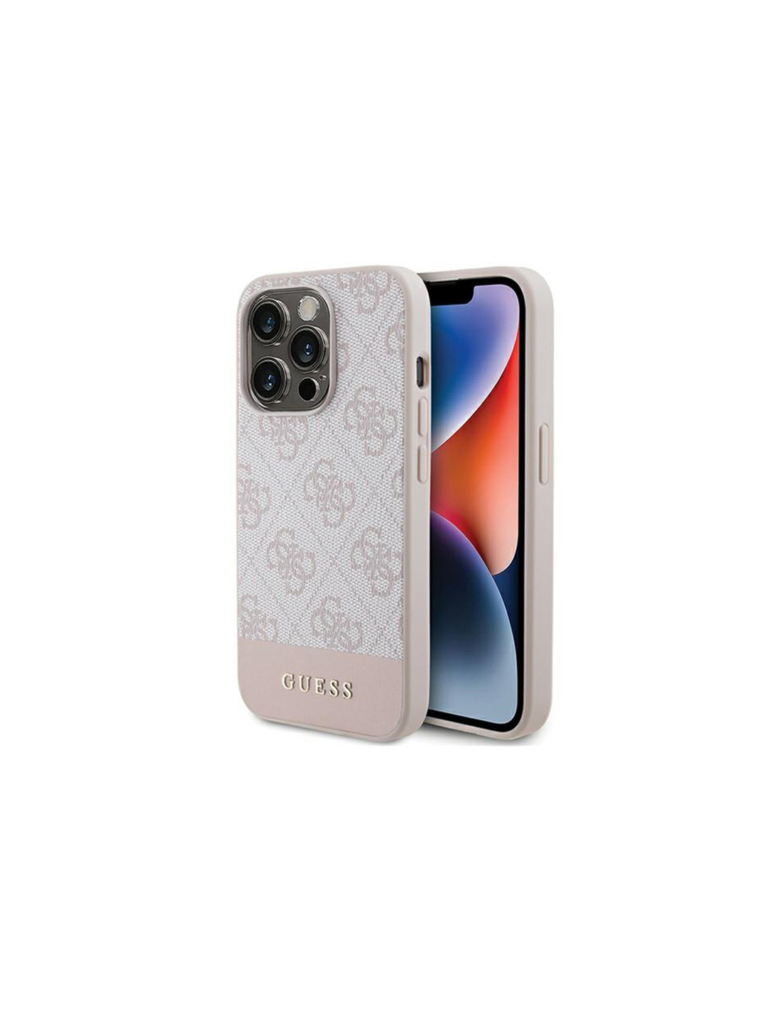 Etui Do iPhone 15 Pro Guess 4G Bottom Stripe Metal Logo Collection Różowy