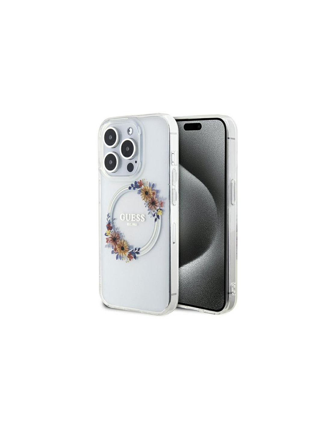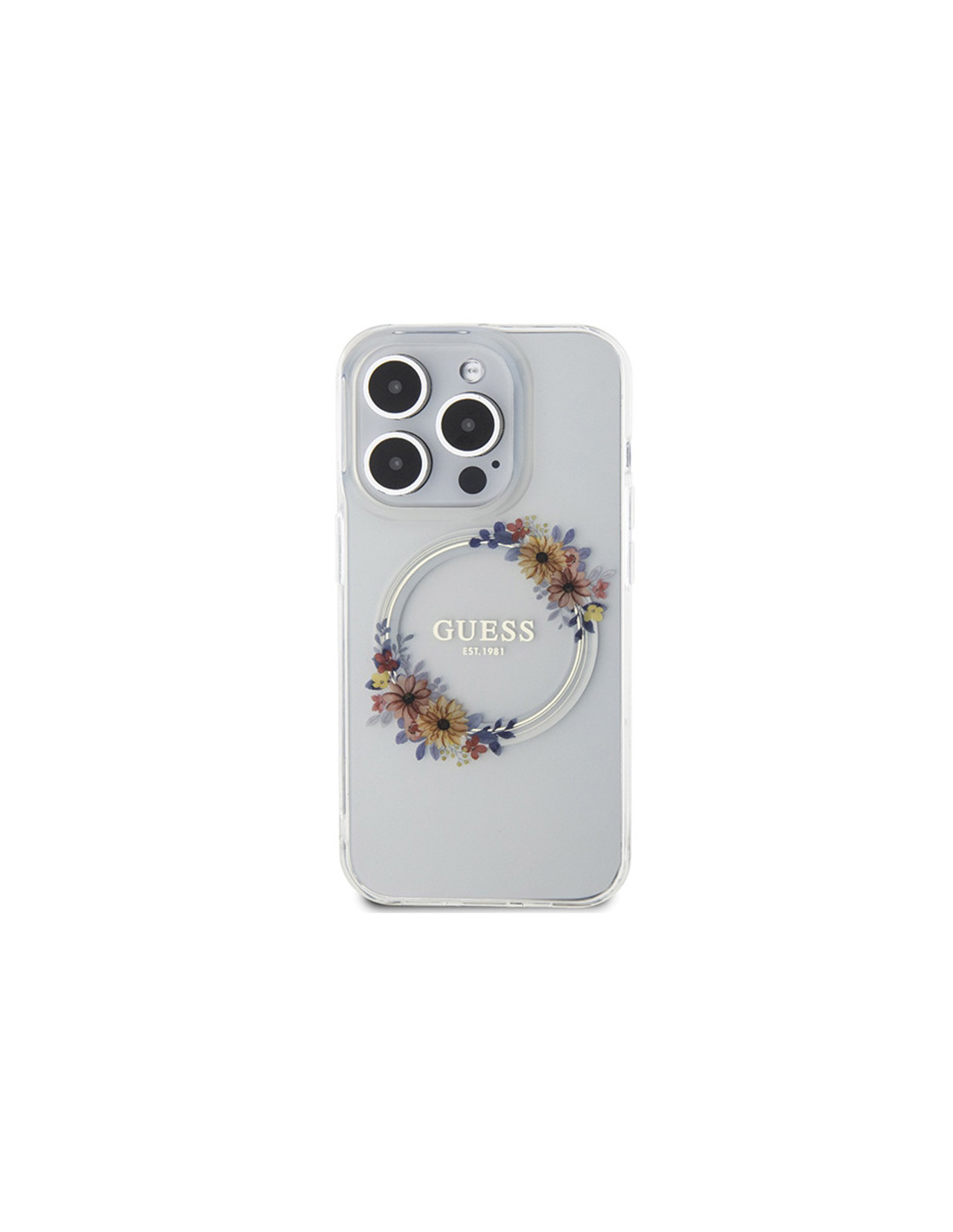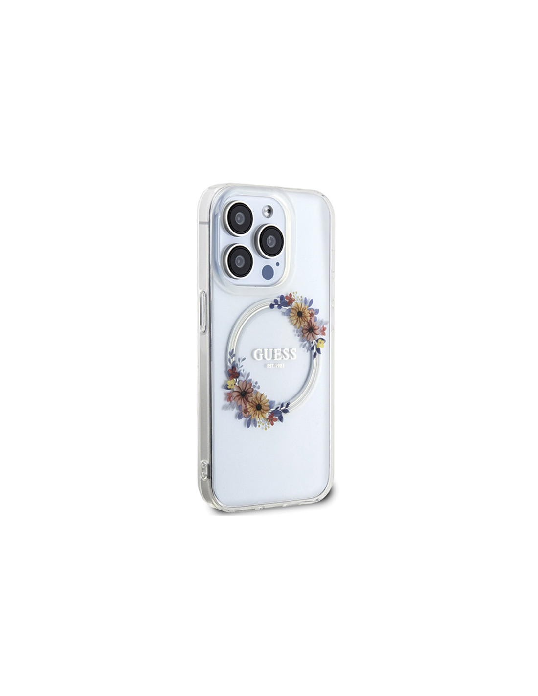 Etui Do iPhone 15 Pro Max Guess IML Flowers Wreath MagSafe Przezroczysty