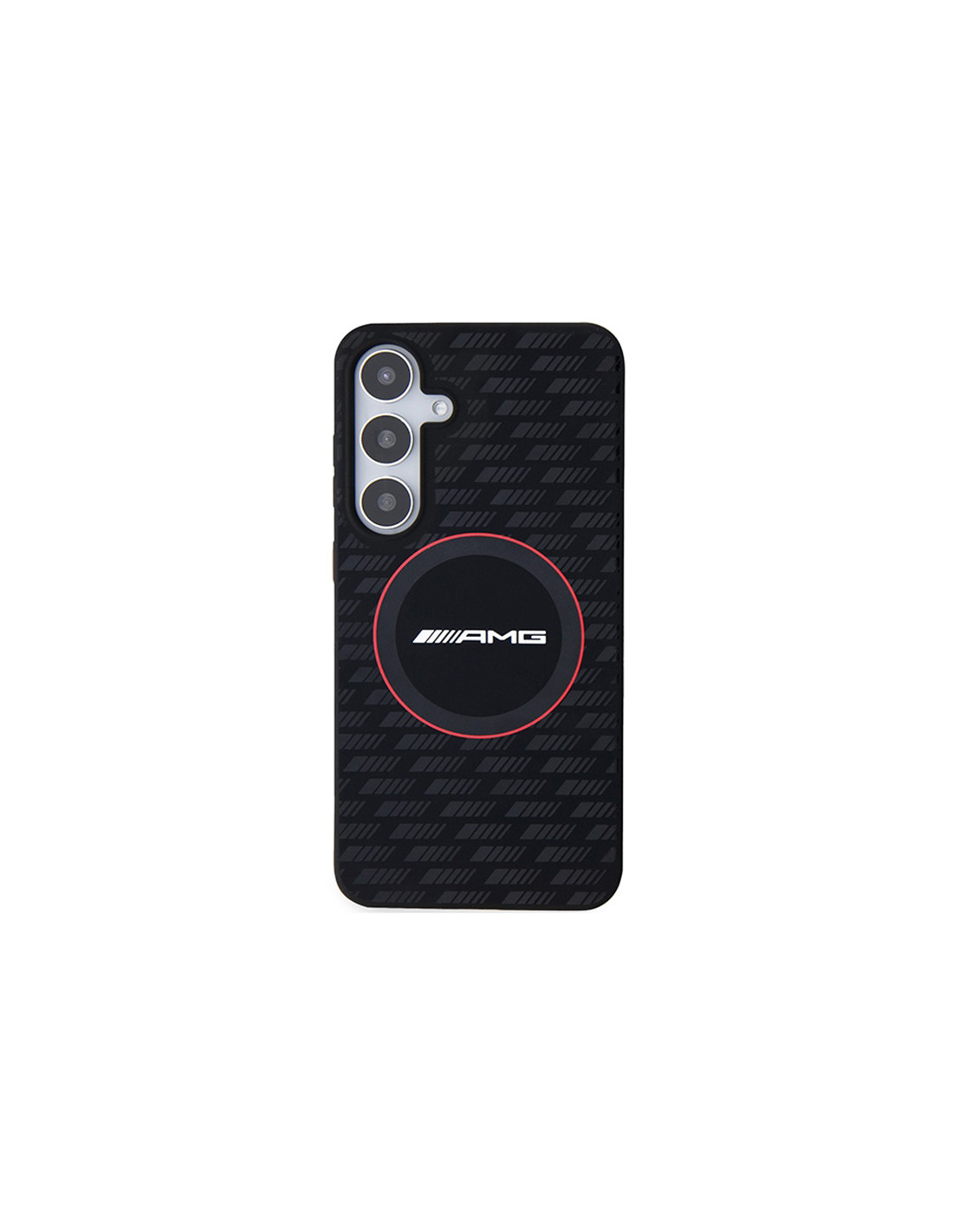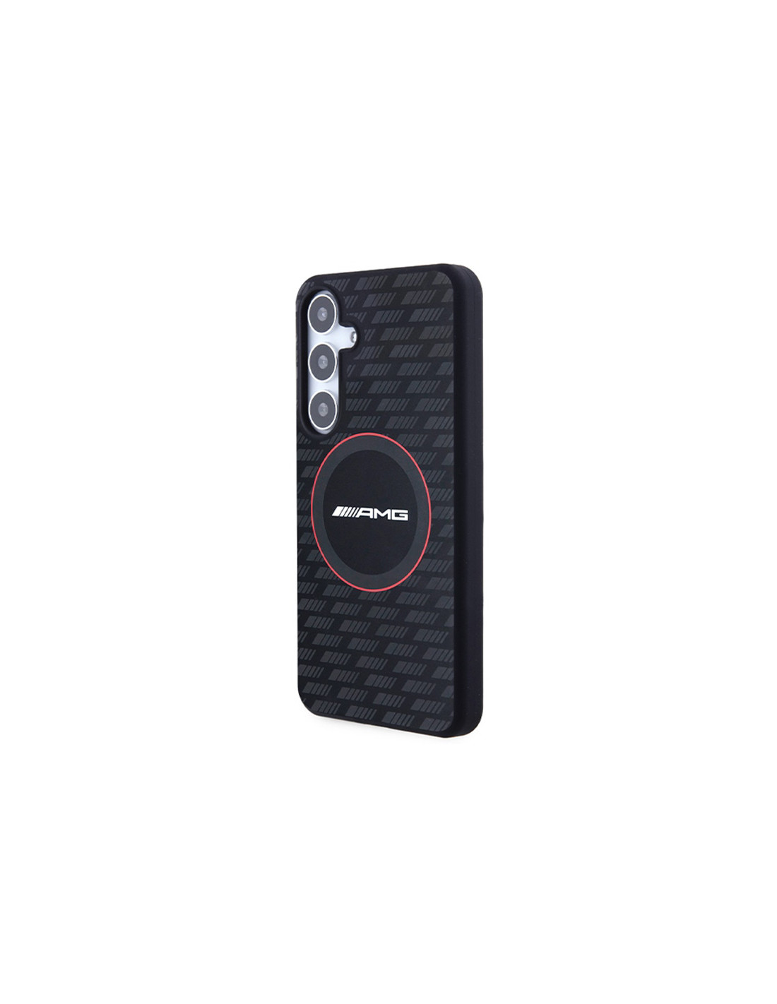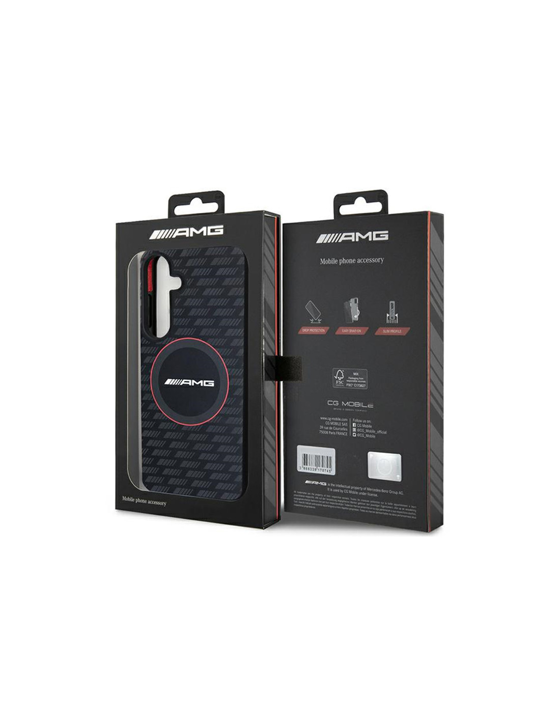 Futerał ozdobiony motywem karbonu dodaje elegancji i podkreśla nowoczesny design, przyciągając uwagę miłośników motoryzacji. Czerwona linia otaczająca pierścień MagSafe podkreśla sportowy charakter kolekcji, nadając etui wyrazistości. Wewnątrz pierścienia MagSafe umieszczono duże logo AMG.