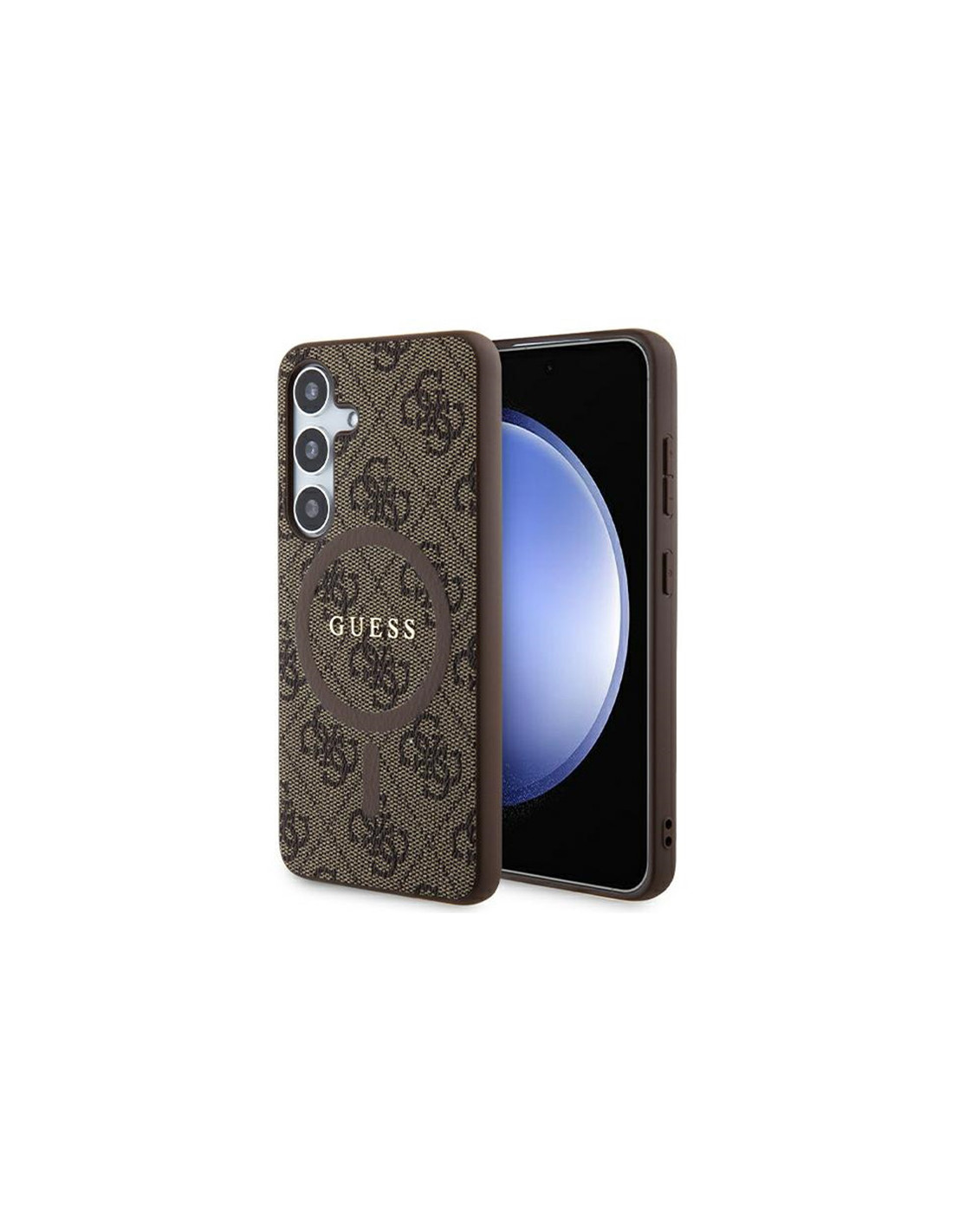 Etui Do Samsung Galaxy S24 Guess 4G Collection Leather Metal Logo MagSafe Brązowy