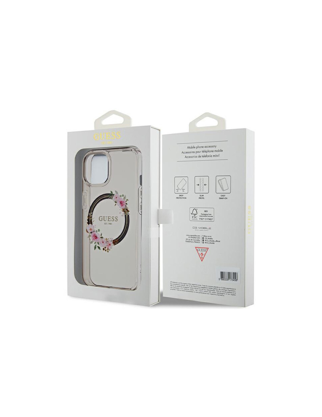 Guess IML Flowers Wreath MagSafe to wysokiej jakości, eleganckie etui, zapewniające ochronę przed porysowaniem i uszkodzeniami urządzenia. Pokrowiec wyróżnia się wysoką jakością wykonania, niesamowitą funkcjonalnością oraz przepięknym wyglądem, co z pewnością odnajdzie każda miłośniczka kwiatowych motywów.