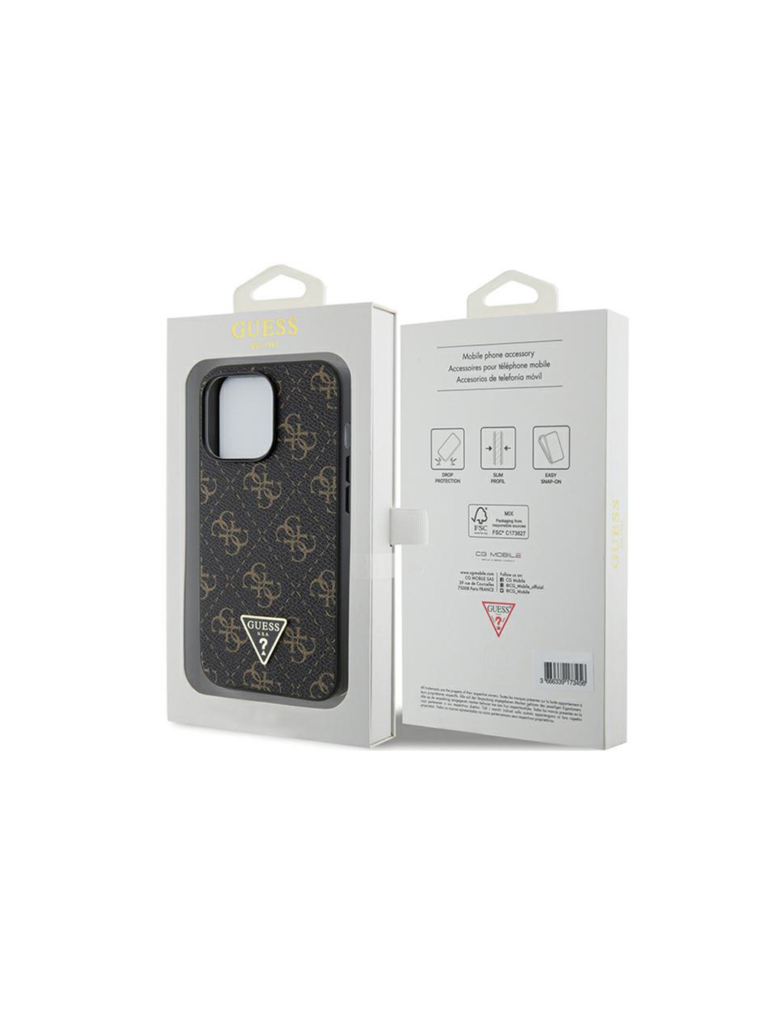 Guess 4G Triangle Metal Logo charakteryzuje się jednym z bardziej znanych motywów używanych przez Guess. Tylny panel etui pokryto emblematami 4G oraz złotym, trójkątnym logo, które umiejscowiono na bardzo przyjemnej w dotyku fakturze saffiano. Etui wykonane z wysokiej jakości skóry ekologicznej.