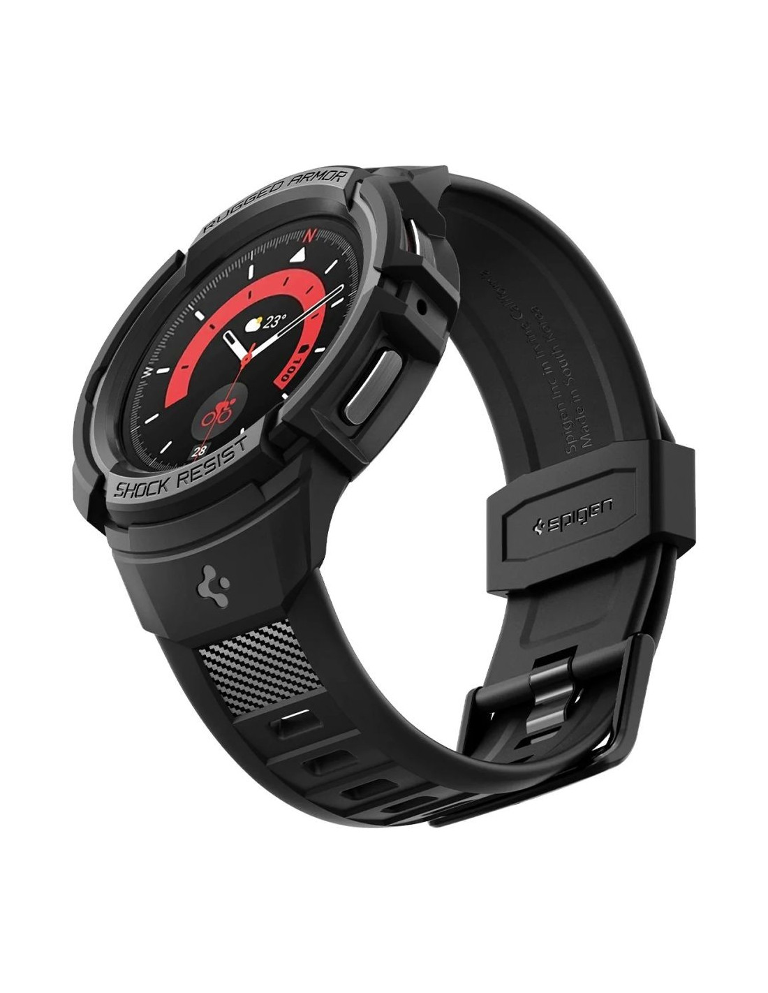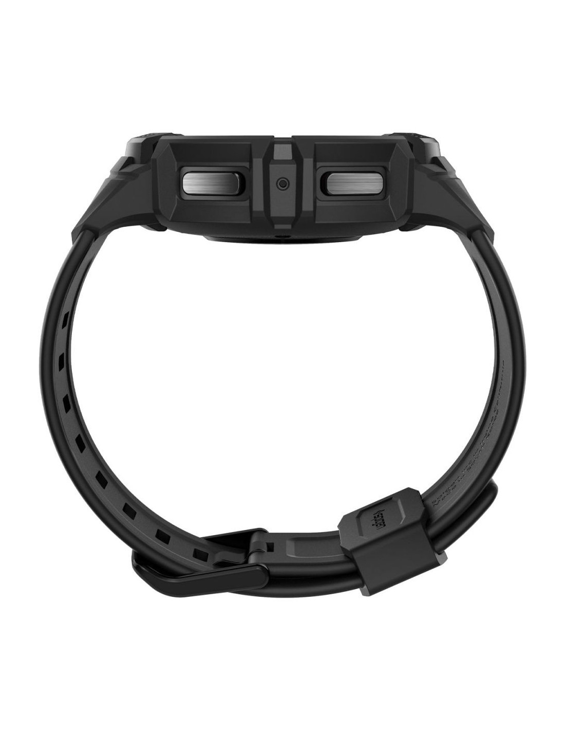 Wygodny pasek o sportowym zacięciu. Wykonany z elastycznego materiału TPU zdobionego akcentami z włókna węglowego. Posiada zintegrowaną obudowę z uwydatnionymi rantami, która pozwala na ochronę koperty zegarka przed zarysowaniami oraz uderzeniami. Pasek jest w pełni funkcjonalny i posiada możliwość regulacji według indywidualnych potrzeb.