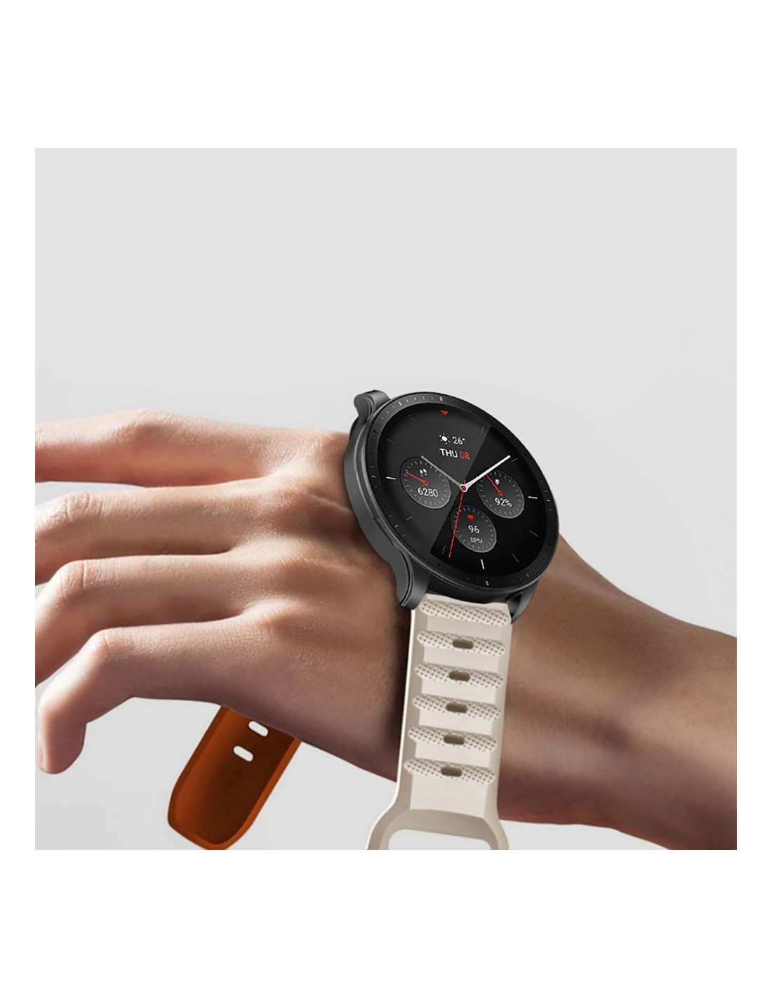 Jego lekka konstrukcja sprawia, że noszenie go na nadgarstku jest niezwykle komfortowe, nawet podczas intensywnych aktywności fizycznych. Dzięki przewiewnym otworom, skóra może swobodnie oddychać.