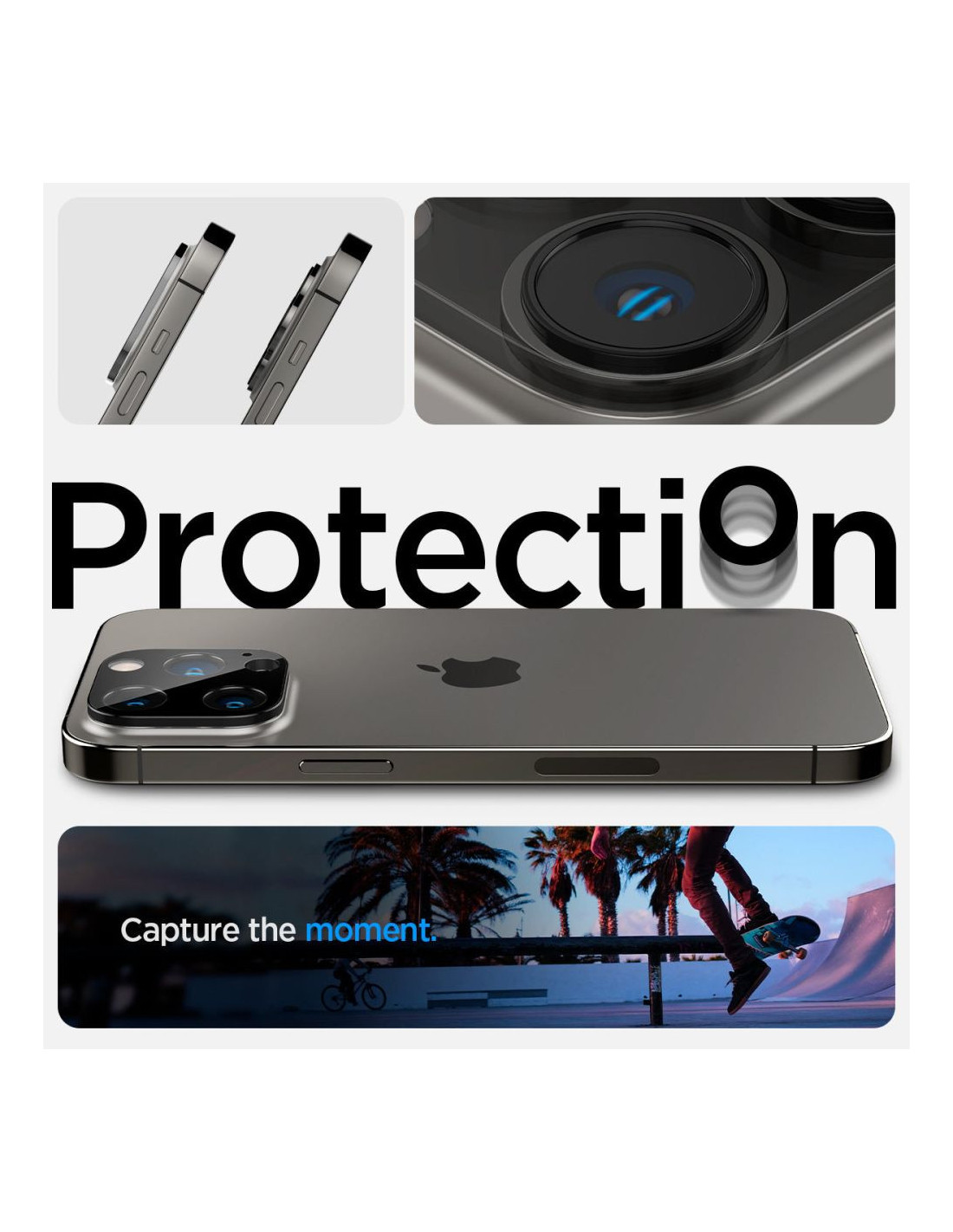 Wykonana ze szkła hartowanego nakładka na obiektyw aparatu od firmy Spigen, to idealne zabezpieczenie tej części urządzenia.