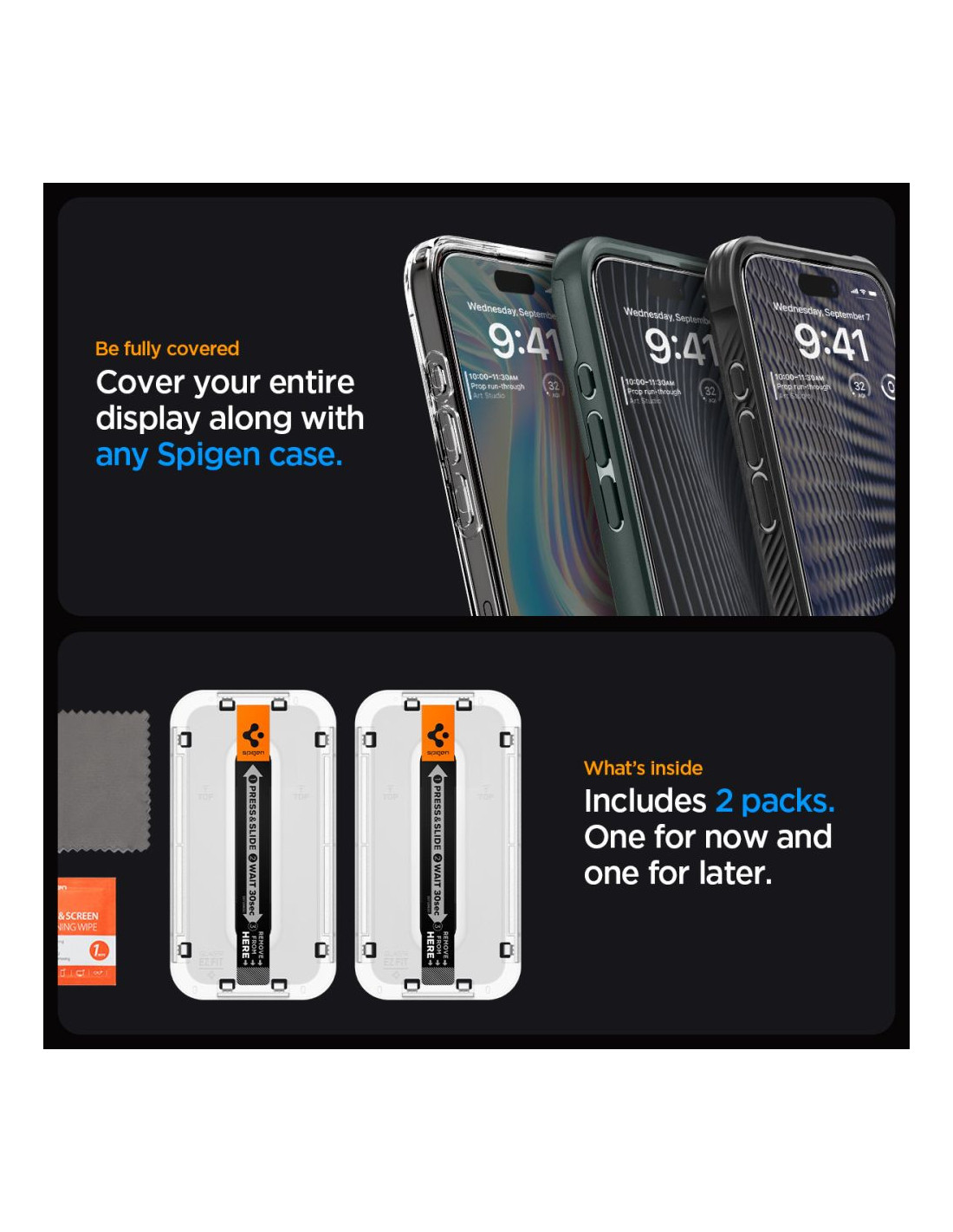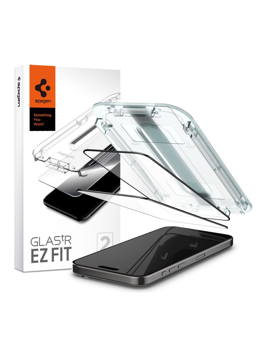 2x Szkło Hartowane Do iPhone 15 Pro Spigen Glas.Tr " Ez Fit " Fc Czarny