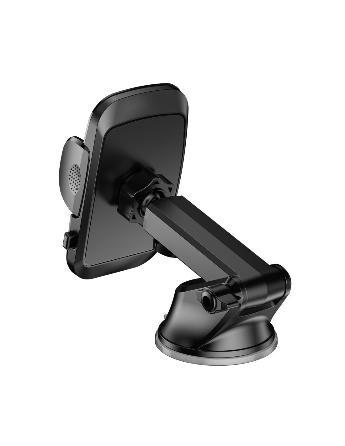 Prosty i szybki montaż to zasługa dwuetapowej dźwigni oraz mocnej, żelowej przyssawki, dzięki której bez problemu zainstalujesz uchwyt w dowolnym miejscu na desce rozdzielczej lub szybie. Wystarczy odtłuścić miejsce w którym chcemy przykleić akcesorium, zacisnąć dźwignię i gotowe! Aby zachować lepkie właściwości przyssawki, przed ponowną instalacją należy ją umyć pod bieżącą wodą.