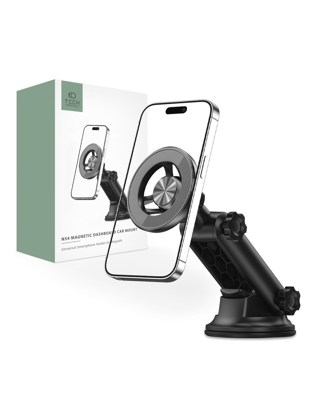 Magnetyczny uchwyt samochodowy N54 od marki Tech-Protect wyposażony w innowacyjny system mocowania Magsafe. Dzięki mocnym magnesom montaż i demontaż Twojego smartfona staje się łatwy i szybki, a stabilne trzymanie urządzenia podczas jazdy jest zapewnione.
