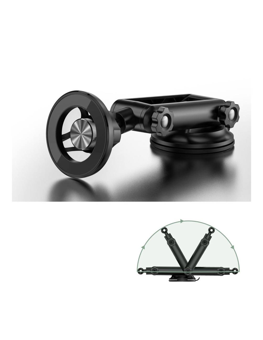 Regulowane ramie uchwytu zostało wykonane z solidnych materiałów, a obrotowa głowica 360 stopni pozwala na dostosowanie ustawień do indywidualnych potrzeb użytkownika. Dzięki niewielkim wymiarom, N54 nie wpływa znacząco na widoczność podczas jazdy, a elegancki design oraz precyzyjne wykonanie sprawiają, że stand to również stylowy dodatek do każdego samochodu.
