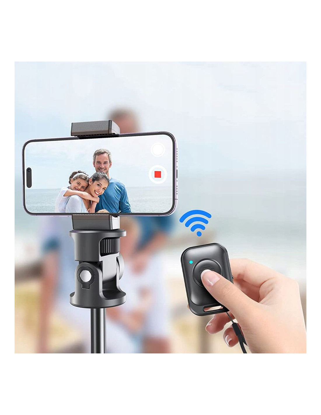 Do zestawu producent dołączył praktyczny pilot bluetooth z zasięgiem do 12 metrów, montowany do statywu.