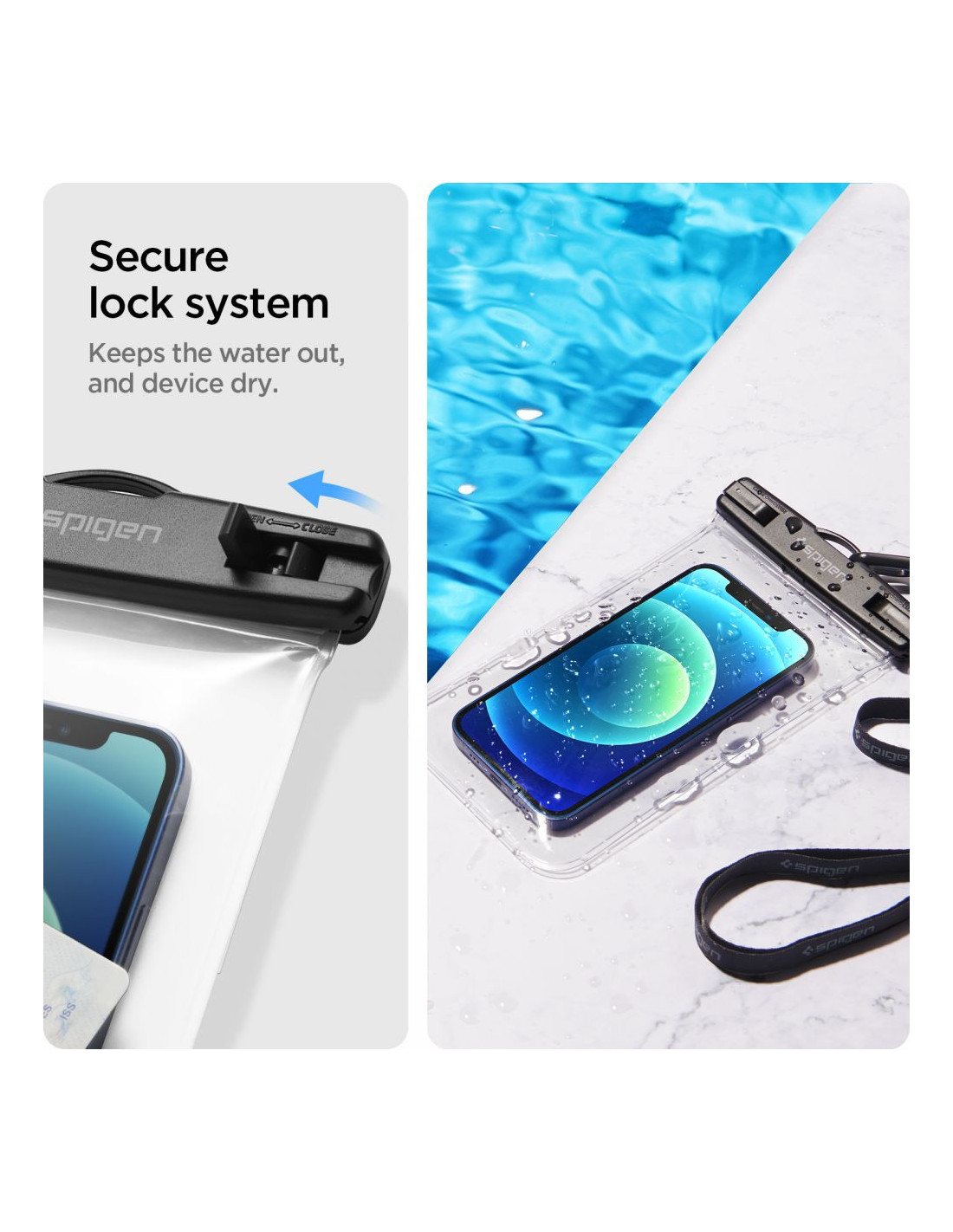 Konstrukcja pokrowca Spigen A601 sprawdzi się idealnie w niecodziennych sytuacjach takich jak: nurkowanie czy pływanie.