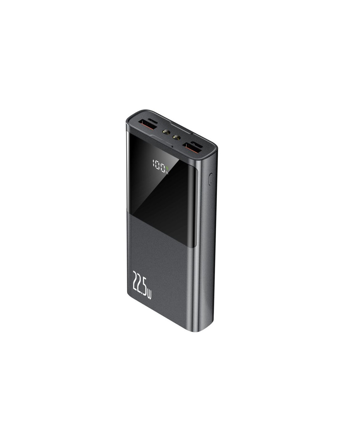 Jego smukła sylwetka sprawia, że jest wygodny w codziennym użytkowaniu. Możesz go łatwo schować do kieszeni lub torby. Duży, cyfrowy wyświetlacz LED pozwala na kontrolę pozostałej energii. Dzięki procentowemu odczytowi możesz szybko zweryfikować, ile energii pozostało w urządzeniu, co jest bardzo praktyczne, aby być zawsze przygotowanym na dłuższe podróże. Power bank jest wyposażony w jeszcze jedną przydatną funkcję - latarkę - co czyni go jeszcze bardziej praktycznym.