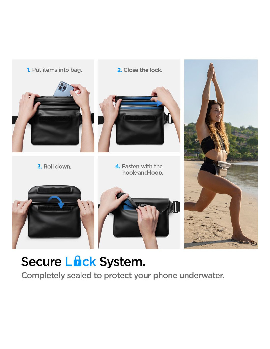 Konstrukcja pokrowca Spigen A620 sprawdzi się idealnie w sytuacjach takich jak kajakowanie czy plażowanie.