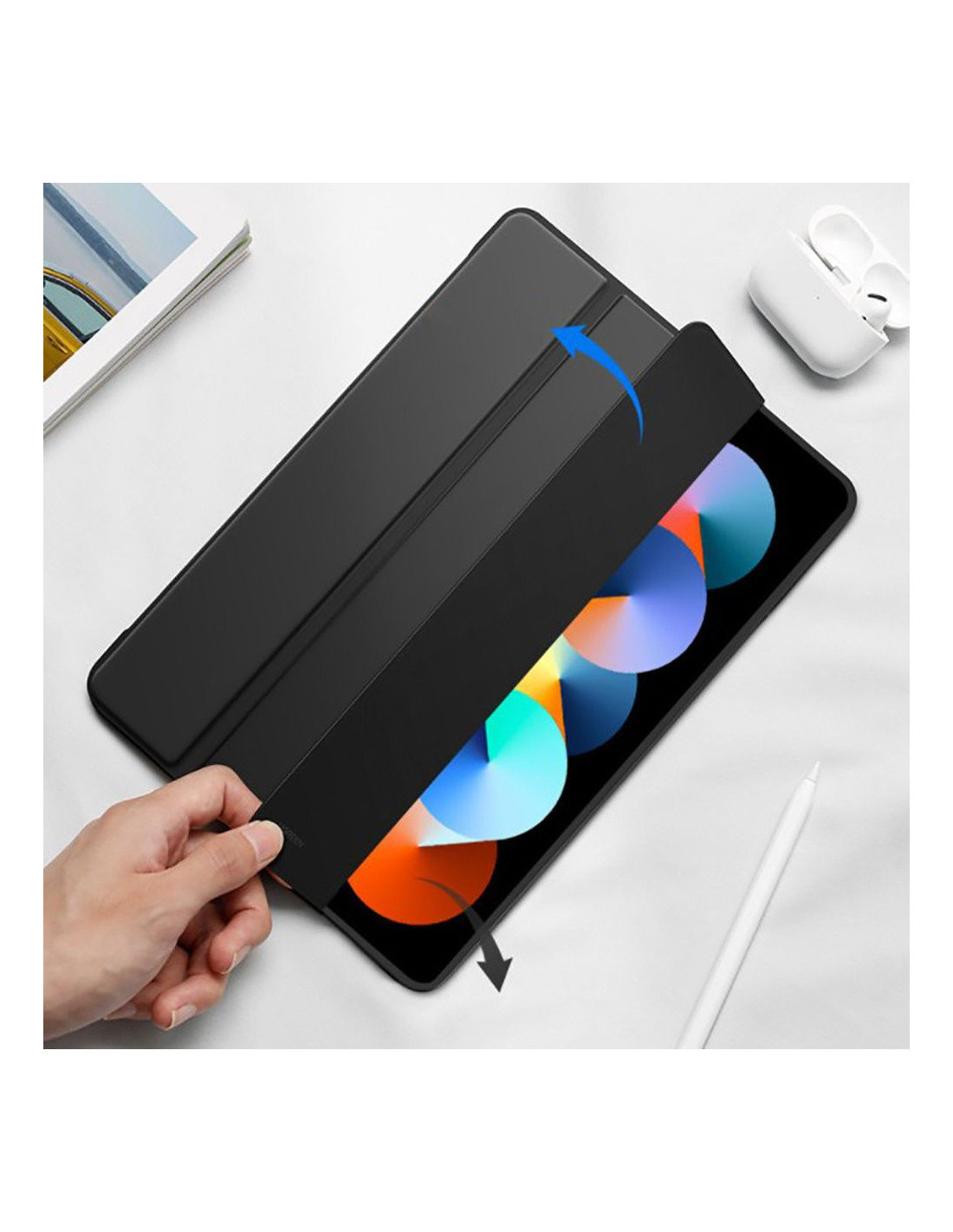 SmartCase ma jeszcze jedną funkcjonalną zaletę - automatycznie budzi i usypia, gdy otwierasz i zamykasz przednią część.