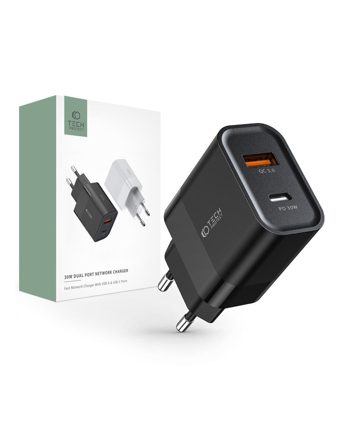 Ładowarka Sieciowa Tech-Protect C30 W 2 - Porty PD30W / QC3.0 Czarny