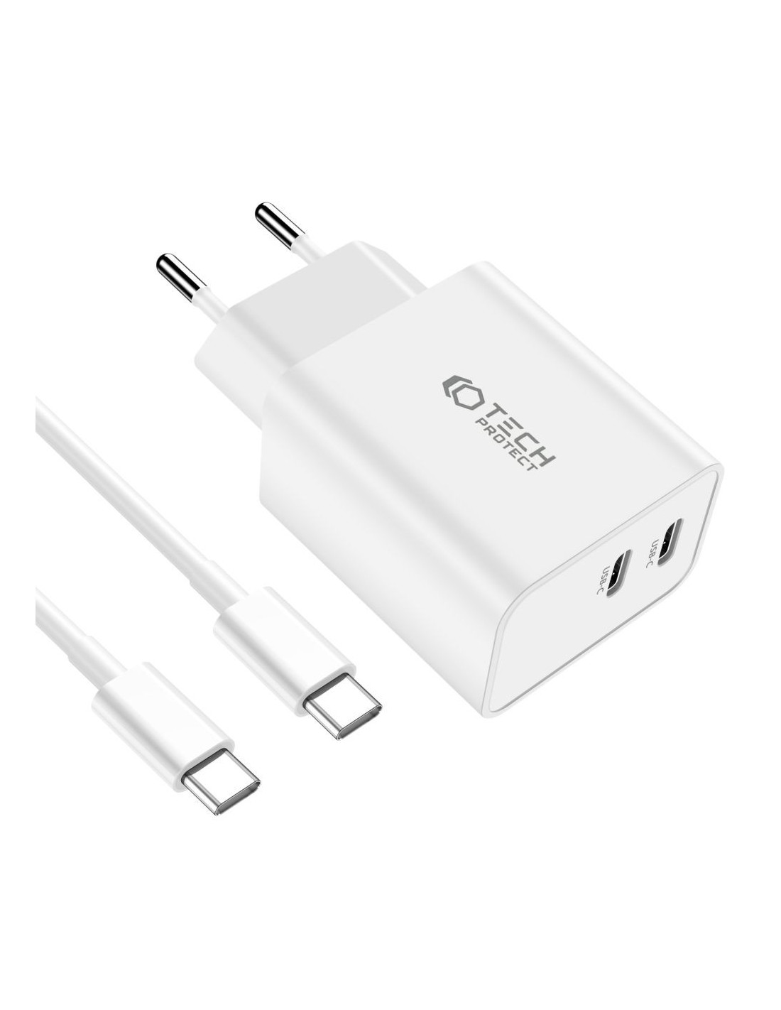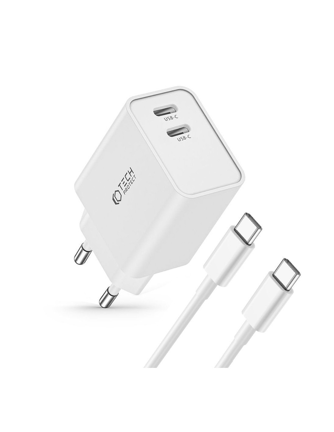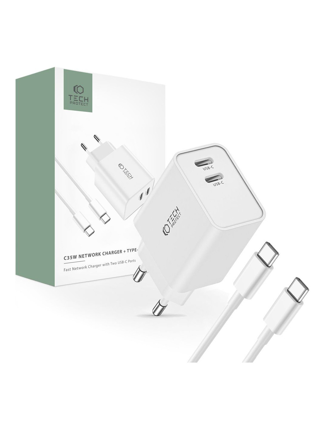 Ładowarka C35W 2 - Porty PD35W + Kabel Typ-C Tech-Protect Biały