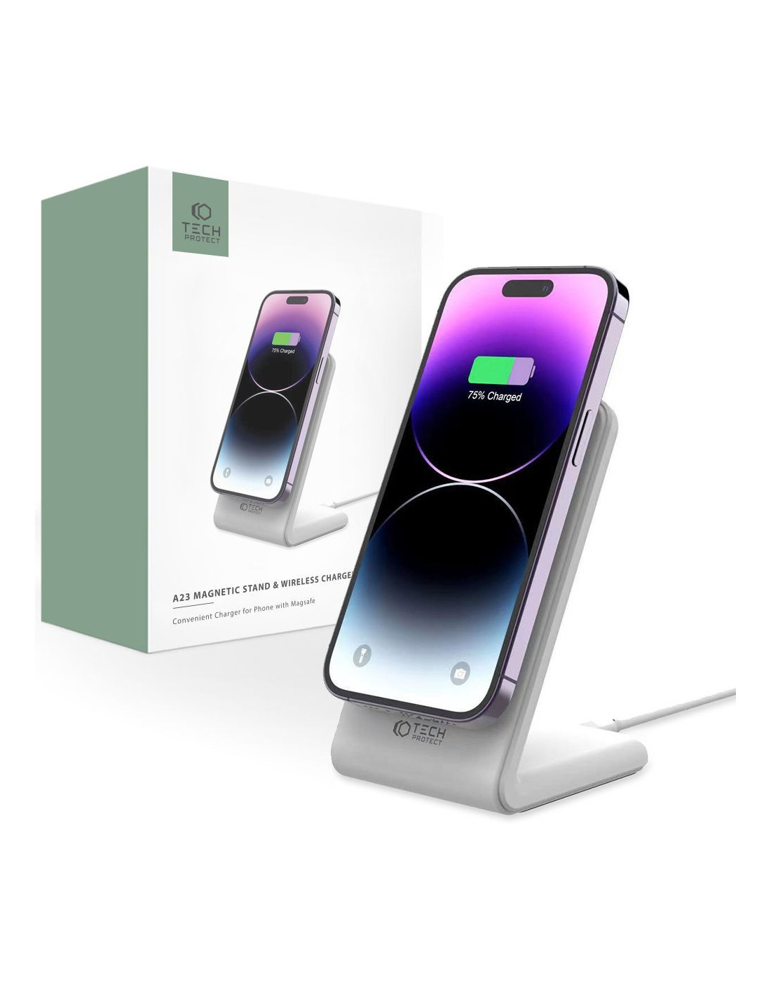 Stojak Z Ładowarką Indukcyjną MagSafe Tech-Protect QI15 W-A23 Biały